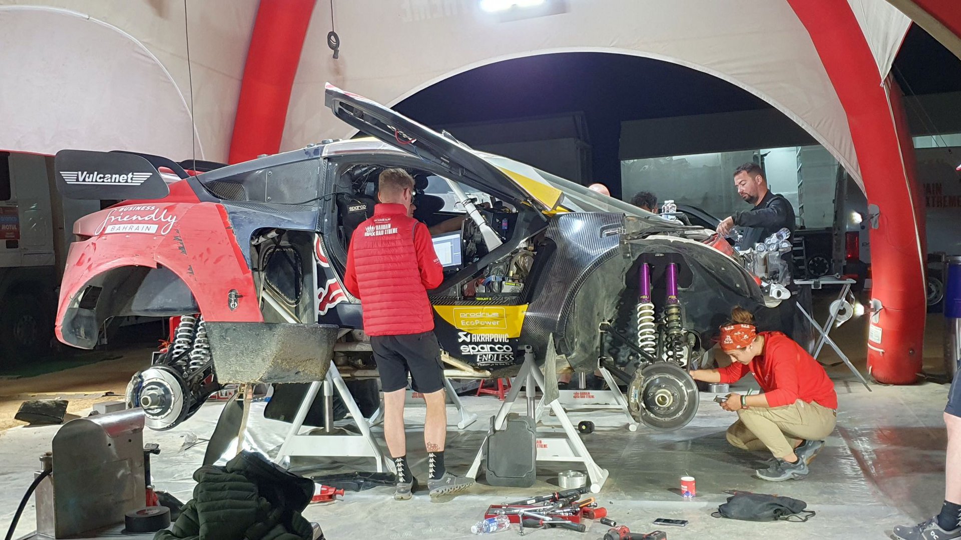 Όταν οι αναβάτες / οδηγοί επιστρέψουν στο bivouac στο τέλος της ημέρας, οι μηχανικοί αναλαμβάνουν την επισκευή του οχήματος και την συντήρησή του για να μπορέσει να συνεχίσει την επόμενη ημέρα. Και η επισκευή και οι δοκιμές, μπορούν να γίνονται ακόμη και στις 12 το βράδυ, αλλά και στις 4 το πρωί, με τα οχήματα να κυκλοφορούν και να δοκιμάζονται συνεχώς μέσα στη νύχτα.