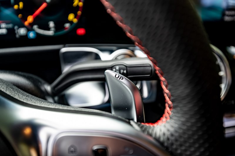 Έσχατη λύσει για να επαναφέρεις τα πράγματα στη σωστή τους διάσταση το AMG Dynamic Select ή αν προτιμάτε ο διακόπτης μέσω του οποίου η λευκή GLB μετατρέπεται από έναν υπεράνω κάθε υποψίας SUV σε έναν ακούραστο θηρευτή.