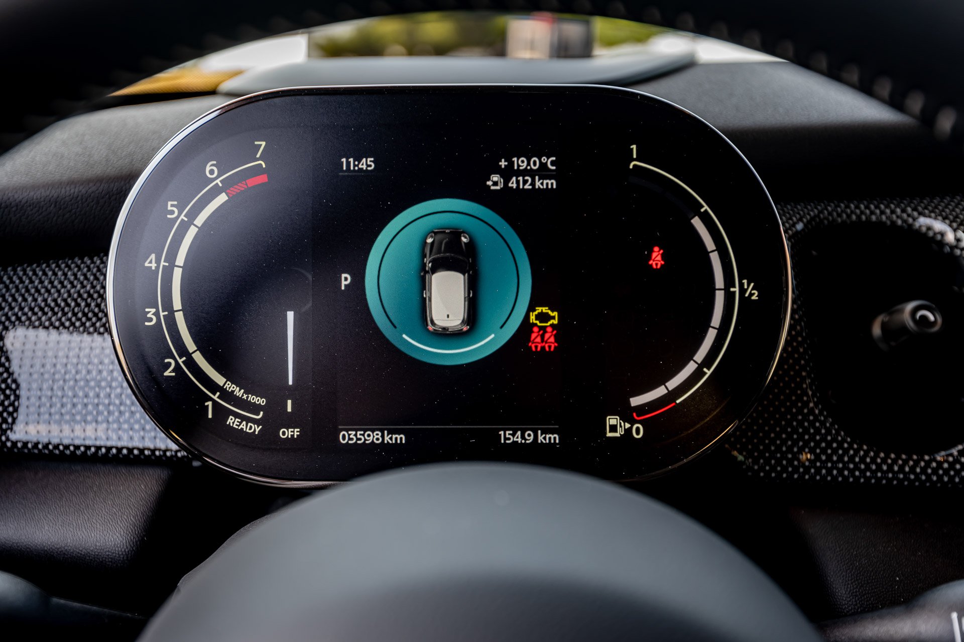 Η εικόνα στο ταμπλό τού MINI Cooper S παραπέμπει κάπως σε αυτή της αμιγούς ηλεκτροκίνητης εκδοχής τού μοντέλου. Δεν θα μπορούσε να γίνει διαφορετικά καθώς πρόθεση των ανθρώπων της εταιρείας είναι να μετατραπεί η MINI σε μια αυτοκινητοβιομηχανία η οποία από τις αρχές του 2030 θα κατασκευάζει μόνο οχήματα αυτής της τεχνολογίας. Άλλωστε, έχει ανακοινωθεί ότι ο τελευταίος καινούργιος κινητήρας εσωτερικής καύσης που θα δημιουργήσει θα παρουσιαστεί το 2025. Οψόμεθα.