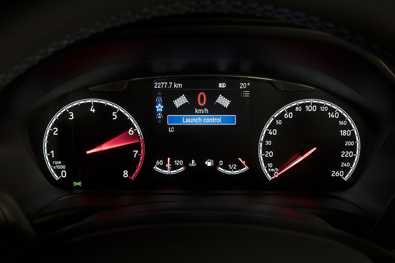 Η καλή αρχή γίνεται φυσικά από την θέση οδήγησης, με τα εξαιρετικά Recaro που στηρίζουν πολύ καλά το σώμα. Το τιμόνι ρυθμίζεται εκεί ακριβώς που το θέλεις (αν και η ψηλή τοποθέτηση του καθίσματος, λόγω καταγωγής από το απλό Fiesta, δεν συνάδει με τις περιστάσεις) ενώ και το σαλόνι, με τις σπορ πινελιές σε διάφορα σημεία ήδη σε ψήνει ότι βρίσκεσαι σε κάτι που μόνο η Ford μπορεί να κατασκευάσει.