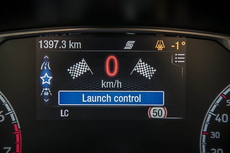 Η κίνηση μεταδίδεται στους εμπρός τροχούς μέσω ενός κιβωτίου έξι σχέσεων με πολύ καλή κλιμάκωση και ακριβή επιλογέα ταχυτήτων, ενώ στα θετικά θα πρέπει να σημειώσουμε το "κλασικό" χειρόφρενο, που τόσο απαραίτητο είναι σε αυτοκίνητα αυτού του είδους. Υπάρχει επίσης και Launch Control για όποιον θέλει να παίξει τον "ήρωα των φαναριών", το οποίο συντονίζει στο μάξιμουμ τα συστήματα ESP, ASR και το μπλοκέ διαφορικό για την ιδανική εκκίνηση. Αν και μάλλον σε ένα τέτοιο αυτοκίνητο και με το χειροκίνητο κιβώτιο, είναι σαν να κλέβει την χαρά από τον οδηγό να φτιάξει ο ίδιος την τέλεια εκκίνηση (αφήστε που μάλλον θα σε βάζει στην πρίζα να ταλαιπωρείς άδικα το αυτοκίνητο και το μπροστινό σύστημα).