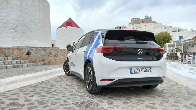 Οι πρώτες αλλαγές σε ό,τι αφορά την κινητικότητα ήρθαν πριν δύο ακριβώς χρόνια με τα περιπολικά της Ελληνικής Αστυνομίας, του Λιμενικού Σώματος, των Δημοτικών αρχών αλλά και των οχημάτων του αεροδρομίου του νησιού. Και ακολούθησε η «απόβαση» ηλεκτρικών δικύκλων SEAT MÓ eScooter 125, και ηλεκτρικών ποδηλάτων για να έρθουν τα πρώτα ΙΧ,Volkswagen e-up!, ID.3 και ID.4 και μετά, το πρώτο ηλεκτρικό ταξί και τρία ID. Buzz ως μέσα αστικής κατά παραγγελίας μετακίνησης (διαθέσιμα καθ’ όλη τη διάρκεια του έτους). Οσονούπω δε, έρχεται ένα e-Crafter ως ασθενοφόρο συμπληρώνοντας το ήδη ηλεκτρικό ασθενοφόρο του νησιού.