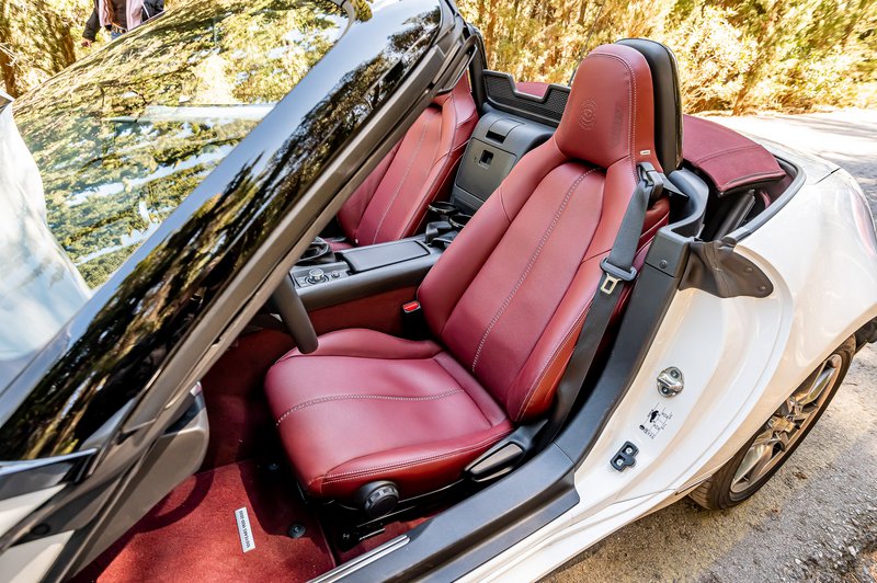Οι λεπτομέρειες δείχνουν κλασικά για Mazda κορυφαίο φινίρισμα, και οι πινελιές της επετειακής έκδοσης, που οδηγούμε εδώ, με ανώτερη αισθητική. Υπάρχει και στη σοφιστικέ έκδοση RF με σκληρή, ηλεκτρικά αναδιπλούμενη οροφή, αλλά ένα soft top (και μάλιστα πολύ καλά μονωμένο) είναι ό,τι καλύτερο για τους πιουρίστες που αποζητούν την επιστροφή στην απλότητα και στην οδηγική αγνότητα.