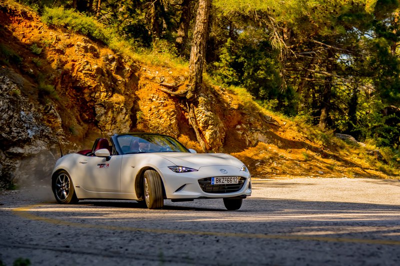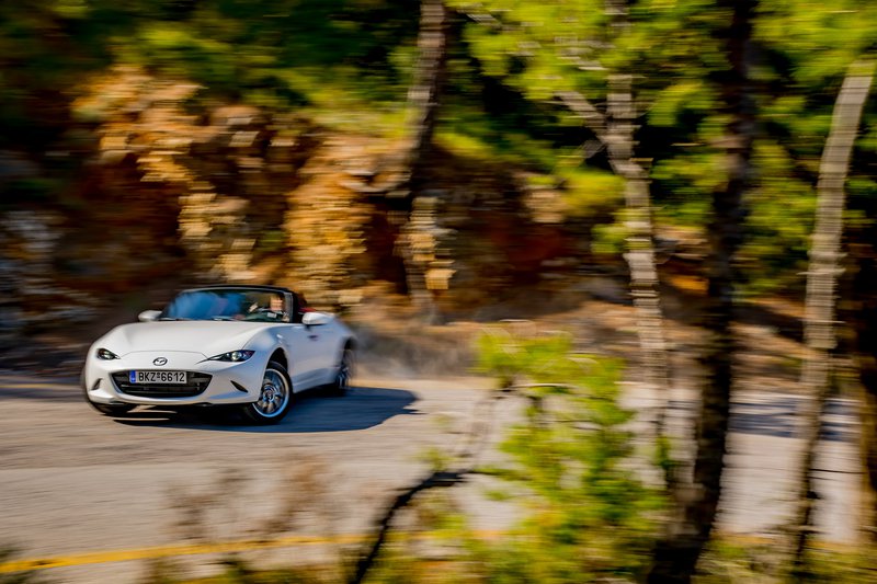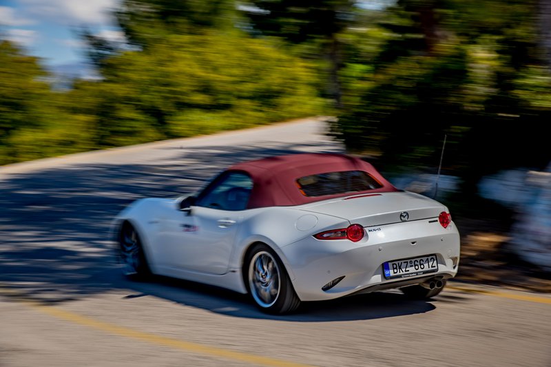 Μη χαλιέστε. Απλώς βρείτε στροφές, κλειστές. Εκεί το ΜΧ-5 δείχνει την παντοτινή του λάμψη. Διπλά ψαλίδια εμπρός, πολλαπλοί σύνδεσμοι πίσω, ηλεκτρικά υποβοηθούμενο αλλά γρήγορο τιμόνι με διπλό πινιόν, 996 κιλά χάλυβα, αλουμινίου και υφάσματος, ζύγισμα τέλειο, χαμηλό κέντρο βάρους, άμεσος έλεγχος και πάλι από την αρχή εκείνη την ωραία στροφή που τη ζεις από τα 1,2 μέτρα από το έδαφος. Και από επιδόσεις; Η Mazda «ορκίζεται» για ένα 0-100 km/h σε 8,3 sec και τελική στα 204 km/h, αλλά αλήθεια τώρα, who cares;