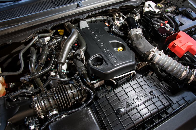 O πιο…αδύναμος κρίκος είναι ο κατά τον διαμήκη άξονα τοποθετημένος πετρελαιοκινητήρας των 2 λίτρων που είναι ο bi-turbo EcoBlue των 213 ίππων και με 500 Nm ροπής, συνταιριαγμένο με 10άρι, αυτόματο κιβώτιο της Ford και με υποπολλαπλασιασμό (2,72:1). Η μετάδοση είναι ηλεκτρονικά ελεγχόμενη με transfer box προσφέρει την «κανονική» μεταφορά στους πίσω τροχούς (2H), τετρακίνηση (4Η) και τετρακίνηση με κοντό (4L). Υπάρχει και «κλείδωμα» ενώ προσφέρεται μια πανδαισία προγραμμάτων που επεμβαίνουν στο γκάζι για χρήση Normal, Sport, Grass/Gravel, Snow, Mud/Sand, Baja, Rock… Θέλετε κι άλλα;