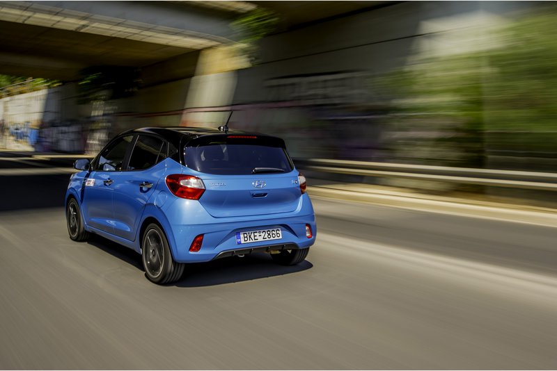 Από τη μία, έχουμε ενδοτικά ελατήρια και αμορτισέρ, μια παραδοχή αστικού ζεν, όταν ο δρόμος είναι κακής ποιότητας, και, από την άλλη, στο πρώτο καπάκι αποχέτευσης νιώθεις τα πάντα όλα, απόρροια της επιλογής ελαστικών. Hankook Ventus Prime 3 διαστάσεων 195/45-R16 για ένα αυτοκίνητο πόλης. Σίγουρα σετάκι που το περιμένουμε στα τουρμπίσια i10 των 100 ίππων.