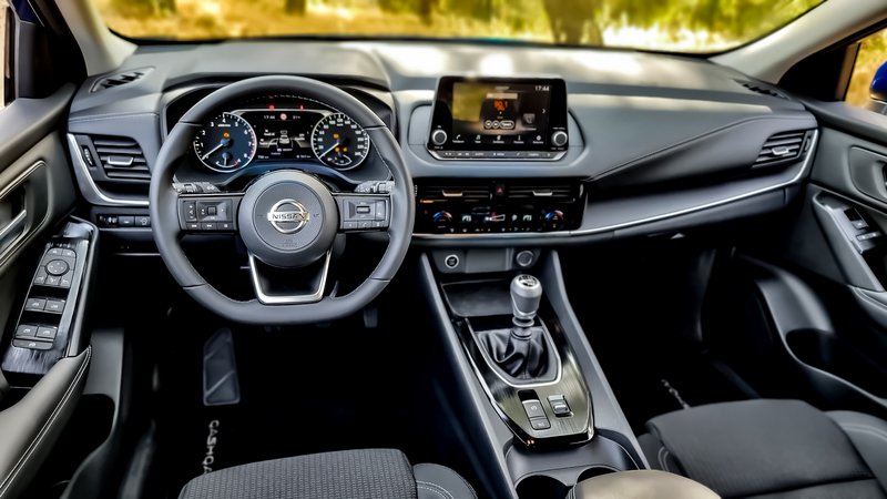 Έχοντας την ευκαιρία πολύ πρόσφατα να οδηγήσουμε το απερχόμενο Qashqai η διαφορά στη σχεδίαση, την αίσθηση χώρων και την αντιληπτή ποιότητα είναι εμφανέστατη. Οι χώροι για μικροαντικείμενα είναι αρκετοί, ο χώρος για τα γόνατα για τους πίσω επιβάτες έχει αυξηθεί κατά 28mm όπως και οι περισσότερες εσωτερικές διαστάσεις, (ο χώρος των αποσκευών για παράδειγμα έχει αυξηθεί κι αυτός σε σχέση με το απερχόμενο Qashqai) ενώ μεγαλύτερη είναι και η απόσταση μεταξύ οδηγού και συνοδηγού. Βασικός εξοπλισμός χωρίς όλες τις ηλεκτρικές ευκολίες στην κατηγορία δε λογίζεται όποτε και το Qasqhai εμπίπτει σε αυτόν τον κανόνα. Ακόμη, η βασική έκδοση περιλαμβάνει Οθόνη TFT 7” στον πίνακα οργάνων (όχι όμως και αντίστοιχη για τα πολυμέσα), αλλά και μια πληρέστατη ομπρέλα 14 συστημάτων με τη γνωστή μας πια ονομασία Nissan Safety Shield. Επιπλέον δε, το δεύτερο επίπεδο εξοπλισμού Elite που είχαμε ως αυτοκίνητο δοκιμής περιλαμβάνει μεταξύ άλλων ζάντες αλουμινίου 17”, κάμερα οπισθοπορείας, σύστημα πολυμέσων με οθόνη αφής 8 ιντσών με εξελληνισμένο μενού, αυτόματο διζωνικό κλιματισμό και αισθητήρα βροχής.