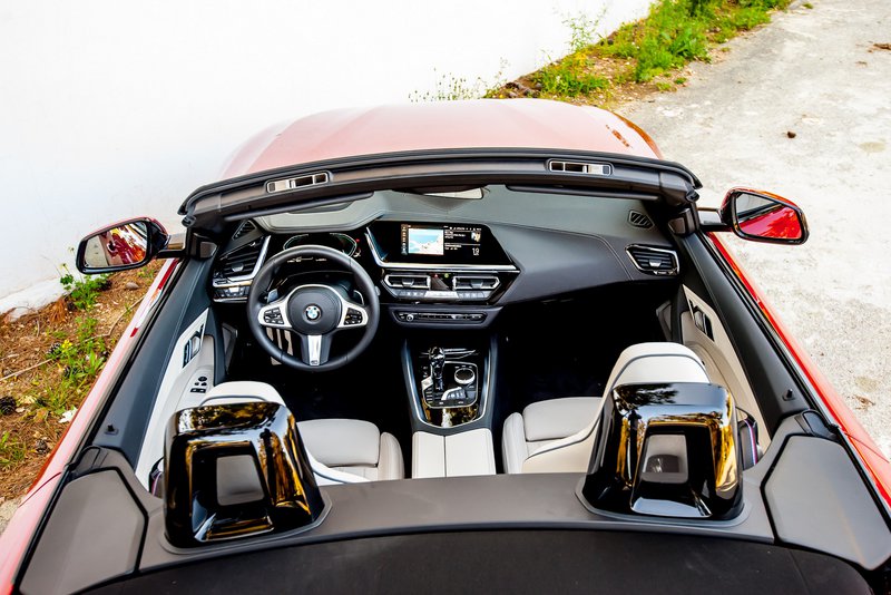 Η σχεδίαση του αμαξώματος είναι ένα από τα σημεία αιχμής της νέας γενιάς, καθώς στόχος ήταν να συνδυαστεί η οδηγική μεταστροφή με έναν πιο δυναμικό αισθητικό χαρακτήρα. Oι κλασικές αναλογίες διατηρούνται και εδώ, όμως είναι πιο ισορροπημένες (ιδίως σε ό,τι αφορά το πίσω μέρος) λόγω της νέας πλατφόρμας CLAR που χρησιμοποιείται. Μιλάμε για ένα σχέδιο με πιο έντονα χαρακτηριστικά, είτε αυτό αφορά την μάσκα με την κατακόρυφη -για πρώτη φορά- διάταξη και τις μεγάλες εισαγωγές στους πληθωρικούς προφυλακτήρες, είτε τα πολύ εντυπωσιακά φωτιστικά σώματα με προβολείς LED (προαιρετικά Adaptive LED), είτε το πλαϊνό τμήμα του αυτοκινήτου με τα μεγάλα Air Breathers και την βασική γραμμή που ολοκληρώνεται ιδανικά στο πίσω μέρος με τα φώτα σχήματος L και το ενσωματωμένο σπόιλερ στο πορτμπαγκάζ. Σημαντική διαφοροποίηση σε σχέση με την προηγούμενη Z4 είναι η επιστροφή στην μαλακή υφασμάτινη οροφή, η οποία είναι κατασκευασμένη από εξαιρετικά υλικά, ενώ ο ιδιαίτερα στιβαρός μηχανισμός της είναι σε θέση να την αναδιπλώσει μέσα σε μόλις 10 δευτερόλεπτα και μάλιστα με το αυτοκίνητο εν κινήσει (μέχρι τα 50 km/h). Ενδεικτικό της πολύ καλής δουλειάς που έχει γίνει με την αεροδυναμική είναι ότι μπορείς να κινείσαι με ταχύτητες της τάξης των 140 Km/h με κατεβασμένη την οροφή χωρίς η ποσότητα και η ένταση του αέρα που φθάνει στο σαλόνι να γίνεται ενοχλητική.