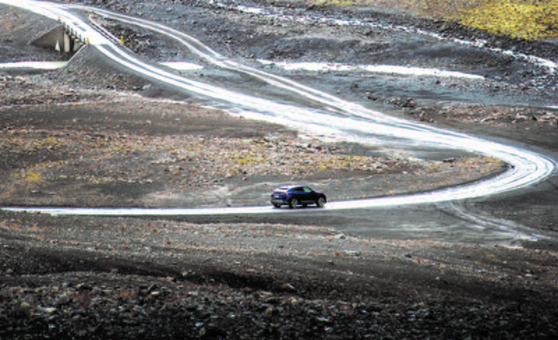 Στον βασικό εξοπλισμό της περιλαμβάνονται κεραμικοί δίσκοι, στο σύστημα πέδησης, ενώ οι διαστάσεις των τροχών της κυμαίνονται μεταξύ 21 και 23 ιντσών. Τόσο η Urus που οδηγήσαμε στην Ισλανδία όσο και αυτή που δοκιμάσαμε νωρίτερα στην Καλιφόρνια είχαν τροχούς διάστασης 22 ιντσών. Στη νησιωτική χώρα, το αυτοκίνητο διέθετε ελαστικά Pirelli Scorpion Winter ενώ αυτό που είχαμε στην αμερικανική πολιτεία Pirelli P Zero. Στις δυτικές ακτές της Ισλανδίας, το καφέ ήταν το χρώμα που κυριαρχούσε, σαφής ένδειξη ότι το παγωμένο, σκούρο χέρι του χειμώνα πλησίαζε απειλητικά. Σποραδικές ακτίνες φωτός ξέφευγαν από τα κατάλευκα σύννεφα που κάλυπταν τον ουρανό αλλά η βροχή έπεφτε με έντονο ρυθμό.