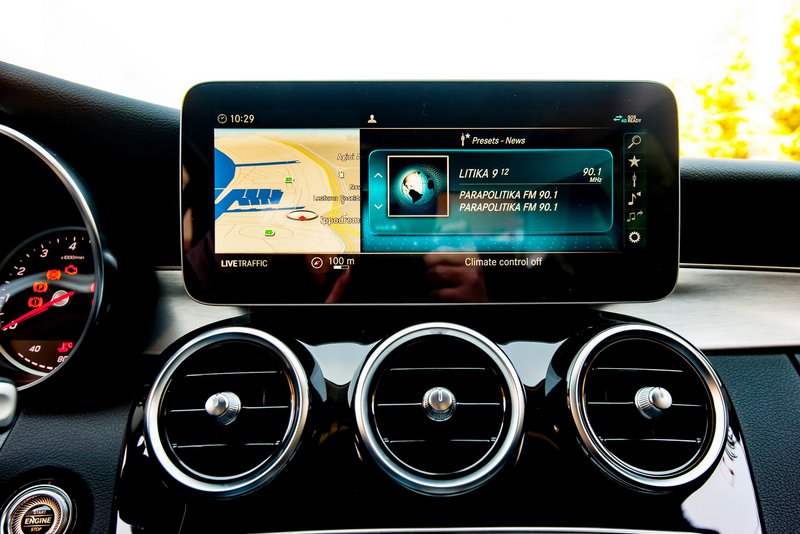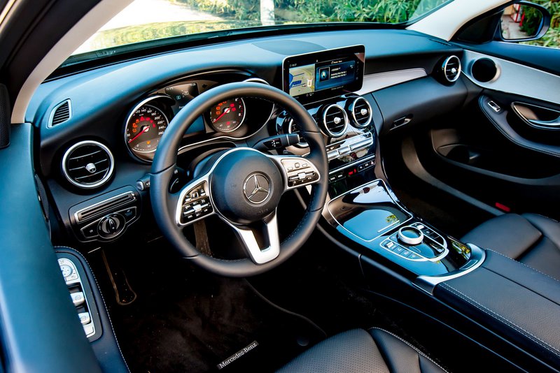 Η εικόνα στο εσωτερικό της C-Class είναι σύγχρονη και σχετικά «σπορτίβ», χωρίς να αλλοιώνεται η εταιρική ταυτότητα, προφανώς. Στη συγκεκριμένη εξοπλιστική έκδοση, τα αλουμινένια επιθέματα σε κονσόλα και εσωτερικό θυρών την κάνουν να δείχνει πιο νεανική.