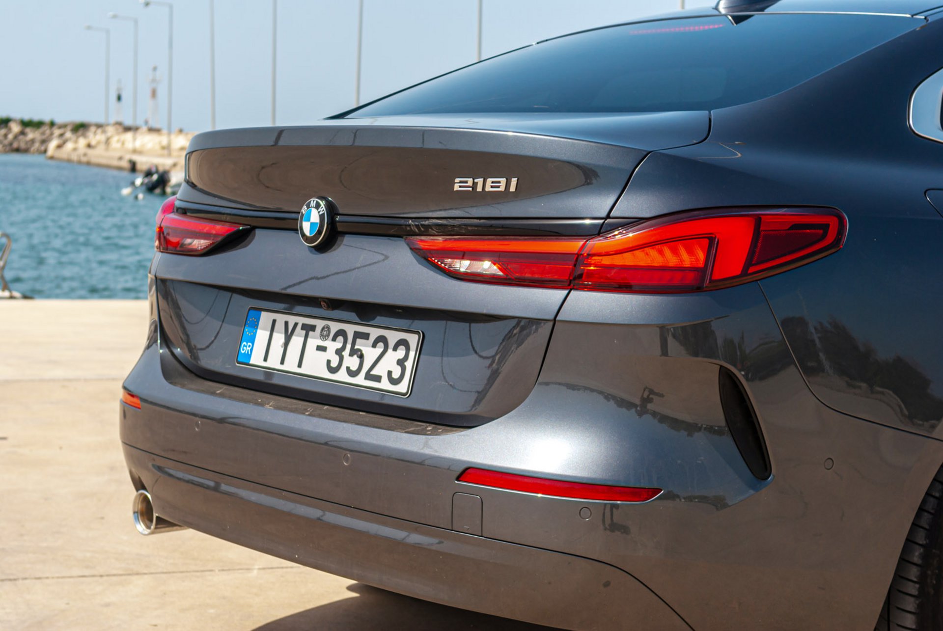 Σχεδιαστικά η 218i έχει όλες τις προϋποθέσεις να εντυπωσιάσει, χωρίς να τα καταφέρνει πάντα, και σε κάθε περίπτωση δίχως να αγγίζει την αύρα των μεγαλύτερων μοντέλων της σειράς, όπως για παράδειγμα την αντίστοιχη 4άρα. Μεγάλο μέρος αυτής της δυσκολίας στο να εκφραστεί πλήρως το σχέδιο ίσως να οφείλεται και στο μήκος των 4,52 μέτρων που δεν αφήνει την όλη ιδέα να ξεδιπλωθεί σε μια πιο ξεκάθαρη εικόνα. Από εκεί και πέρα υπάρχουν ενδιαφέροντα στοιχεία πάνω στο αυτοκίνητο, όπως η δυναμική μάσκα με τα εντυπωσιακά "νεφρά" και τις "μεταλλικές" εισαγωγές αέρα μαζί με τα λεπτά φωτιστικά σώματα.