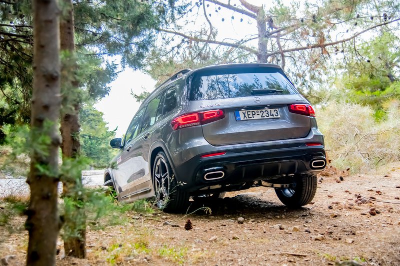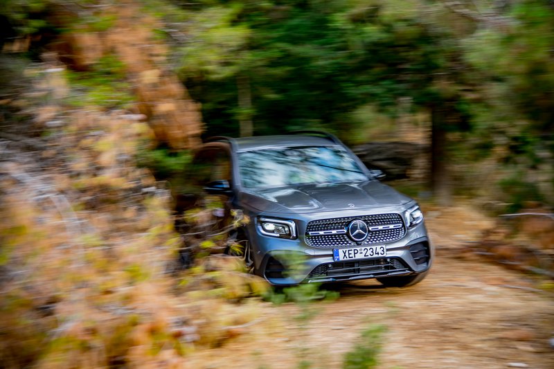 Σαφώς και υπάρχουν κλίσεις στις στροφές, αλλά με τέτοιο μήκος, πλάτος και ύψος αλλά και με βάρος 1.625 κιλά, δε μπορεί, θα κρεμαστείς από τη στεφάνη του τιμονιού σε μια απαιτητική στροφή. Ναι, καλά διαβάσατε, αυτό είναι το σημείο καμπής αυτής της GLB από τις προσθιοκίνητες αδελφές της. Η τετρακίνηση θωρακίζει το αυτοκίνητο από βίαιες συμπεριφορές υπό πίεση με απόλυτο έλεγχο κατά την είσοδο της στροφής χωρίς υποστροφικές περιπέτειες, ενώ σε εκτός δρόμου διαδρομή είναι η χαρά της περιπέτειας, αφού η αυτόματη μετάδοση της κίνησης στους τέσσερις τροχούς κάνει τα πράγματα να φαίνονται τόσο μα τόσο εύκολα. Αν μάλιστα με την πρώτη ευκαιρία τοποθετήσετε και μια τετράδα ελαστικών για χρήση και εκτός δρόμου και όχι τα 235/50-R19 Pirelli P Zero του AMG πακέτου στο αυτοκίνητο δοκιμής, έχετε έναν μακρινό ξάδελφο μιας G-Wagen. Σίγουρα τα 45.400 ευρώ για ένα αυτοκίνητο με αυτή τη μηχανολογική βάση δεν είναι λίγα αλλά από την άλλη, έχεις ένα «αστέρι» με χώρους από μια κατηγορία επάνω (τουλάχιστον) με ξεκάθαρες off-road ικανότητες χάρη στην τετρακίνηση και με εξοπλισμό αντάξιο μιας premium μάρκας.