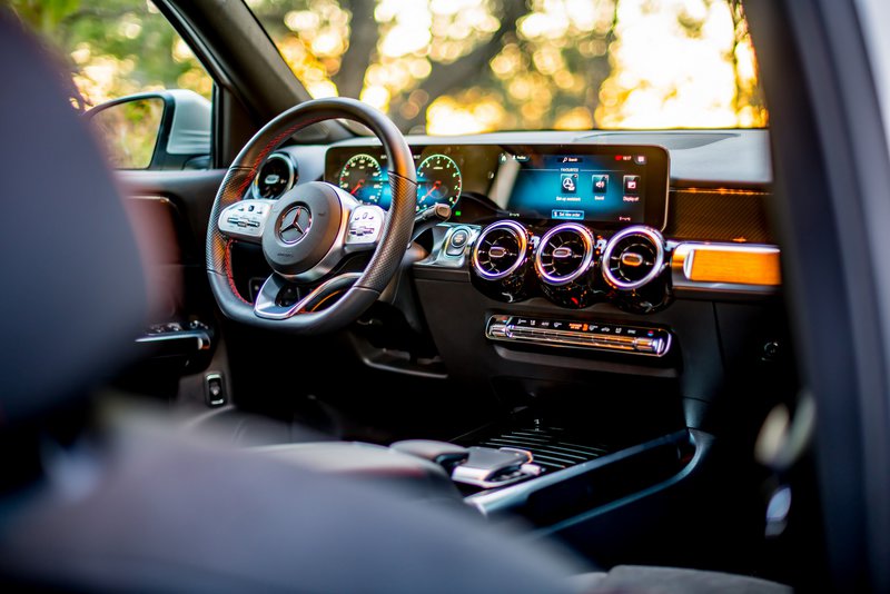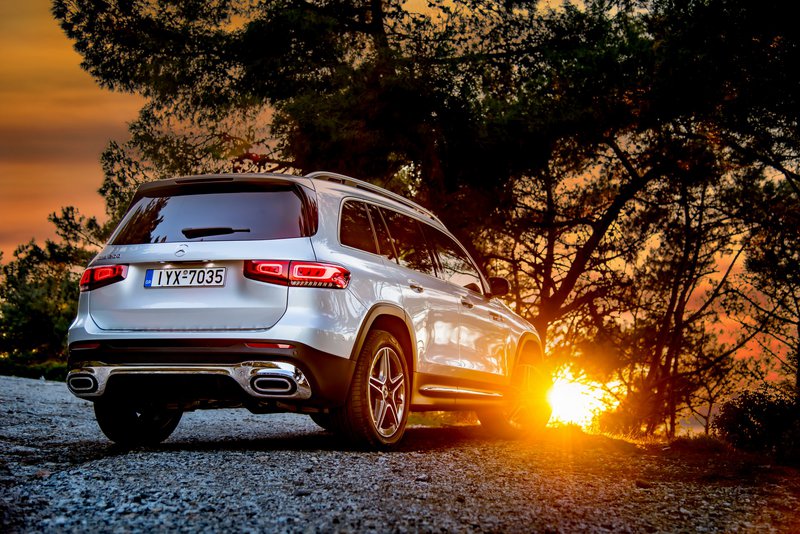 Δείτε την εμπρός κάθετη μετόπη, τη μεγάλη μάσκα, τα φωτιστικά σώματα εμπρός και πίσω αλλά και την σαν-υπερυψωμένο-station κοψιά της. Δείτε την αφθονία σε πλαστικές, σκούρες ποδιές που δεν ντρέπονται να ντύσουν, έτσι γυμνές, μια Mercedes υποδηλώνοντας ότι μπορούν να λασπωθούν, να γδαρθούν και να κτυπηθούν. Δείτε όμως και τον αλά DTM διαχύτη πίσω, τις διπλές απολήξεις της εξάτμισης, τις 19άρες ζάντες και τις διάτρητες δισκόπλακες των φρένων από το οπλοστάσιο της AMG. Ναι, η GLB είναι ένα έξυπνο αυτοκίνητο. Με μήκος δε 4,63 m, η GLB δεν είναι σε καμία περίπτωση συμπαγής (η GLS για παράδειγμα είναι… μόλις 57 cm μακρύτερη).