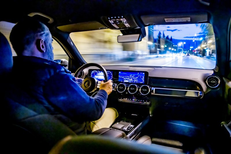 Αφήσαμε για το τέλος το καλύτερο. Η GLB δεν είναι δήθεν off-roader. ΟΚ, το αυτοκίνητο της δοκιμής μας ήταν δικίνητο και τα ελαστικά full ασφάλτινα, όμως η Mercedes δίνει απόσταση του πατώματος από το έδαφος (με πλήρες φορτίο, παρακαλώ!) 20 cm. Βάλτε την περιβολή ενός off-roader και την ποδιά που ευλαβικά προστατεύει το κάτω μέρος του αυτοκινήτου (φροντίζει αυτή η ποδιά και για καλύτερη αεροδυναμική και ηχομόνωση) και ιδού ένα αυτοκίνητο που δεν φοβάται να περάσει ένα δύσκολο ανάγλυφο (περιμένουμε να οδηγήσουμε τετρακίνηση GLB).