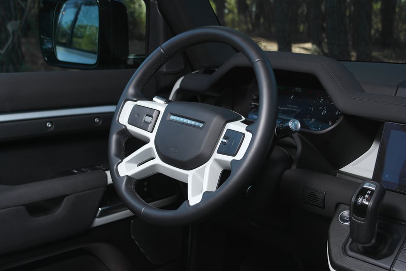 Το γκάζι είναι αρκετό για τον χαρακτήρα του Defender, το τιμόνι ευχάριστα πληροφοριακό, τα φρένα προσπαθούν λίγο παραπάνω αλλά αντέχουν, και μόνον ο κάπως αυξημένος αεροδυναμικός θόρυβος από ένα σημείο και επάνω (κάτι αναμενόμενο, λόγω όλων αυτών των περιφερειακών που υπάρχουν παντού στο αμάξωμα), θα σε κρατήσουν από το να μην κινείσαι σε ταχύτητες κοντά στην τελική. Αυτό, βέβαια, δεν είναι και το νόημα σε ένα Defender, στο οποίο ταιριάζει περισσότερο μια ρέουσα «αρχοντιά» στην κίνηση και μία γενικότερη αφ’ υψηλού αντιμετώπιση κάθε μεταλλικού τετράτροχου κουβά που κινείται γύρω του.