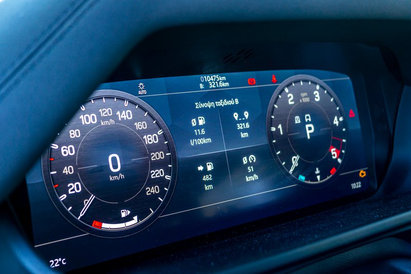 Για τα ελληνικά δεδομένα μοιάζει μία πιο λογική επιλογή, όχι μόνο λόγω της χαμηλότερης τιμής του, αλλά και χάρη στην πιο οικονομική λειτουργία που επιτυγχάνει. Τα 10,0 L/100 km είναι μία τιμή που μπορείς να την αγγίξεις σε ήρεμο ταξίδι, ενώ στην περίπτωσή του σπάνια θα ξεφύγει πολύ πιο πάνω (σε καμία περίπτωση δεν φλερτάρει με τα 20 λίτρα της βενζινοκίνητης έκδοσης), κάτι που, σε συνδυασμό με τη χαμηλότερη τιμή τού diesel, το κάνει αρκετά πιο οικονομικό σε καθημερινή χρήση. Και με μεγαλύτερη αυτονομία βεβαίως, στοιχείο που συχνά ξεχνάμε πόσο σημαντική είναι σε αυτοκίνητα όπως το Defender.