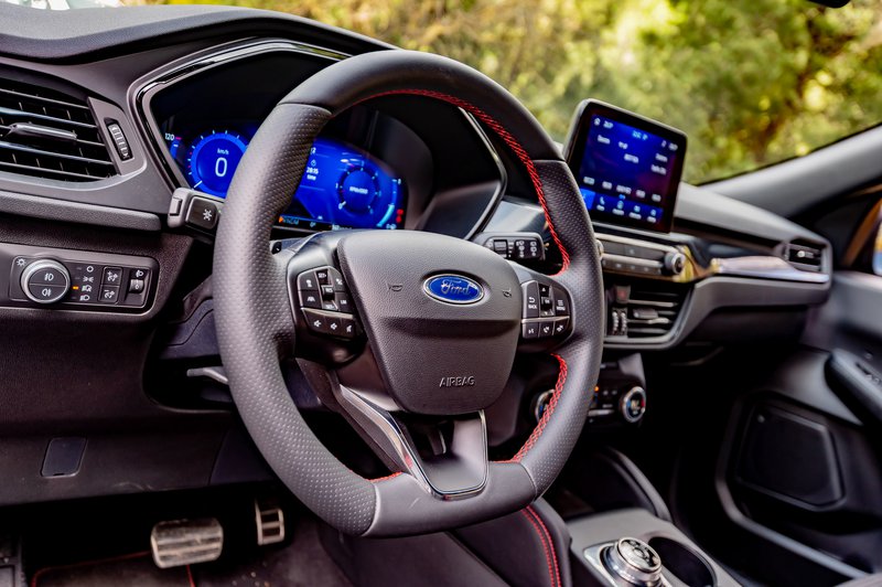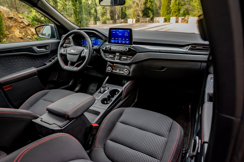Η σχεδίαση του εσωτερικού δεν διαφέρει από τη συνήθη φιλοσοφία της Ford, εστιάζει στην πρακτικότητα και όχι τόσο στον εντυπωσιασμό. Τα υλικά δείχνουν καλής ποιότητας, αλλά είναι σκληρά σε πολλά μέρη του ταμπλώ. Επίσης. η έλλειψη χρώματος στην καμπίνα είναι προφανής. Ευτυχώς, υπήρχε η έγχρωμη οθόνη LCD 12,3 ιντσών στη θέση του πίνακα οργάνων, η οποία είναι παραμετροποιήσιμη αναφορικά με τις ενδείξεις σε αυτή.