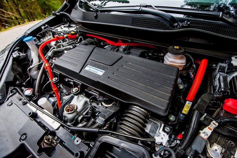 Στην συγκεκριμένη υλοποίηση της Honda τα πράγματα γίνονται λίγο διαφορετικά από ό,τι συνηθίζεται, καθώς ο κινητήρας εσωτερικής καύσης δεν συμμετέχει απευθείας στην μετάδοση της ισχύος η οποία περνά πάντα μέσα από τον ηλεκτροκινητήρα. Ο 2λιτρος i-VTEC που λειτουργεί με τον κύκλο Atkinson με απόδοση στους 145 ίππους, συνοδεύεται από μία συστοιχία μπαταριών ιόντων λιθίου, μία γεννήτρια και έναν ηλεκτροκινητήρα, με τον τελευταίο να είναι αυτός που τελικά δίνει την κίνηση στους τροχούς. Η ιπποδύναμη του ηλεκτροκινητήρα φθάνει στους 184 ίππους, η οποία είναι και η μέγιστη ισχύς που ανακοινώνει το εργοστάσιο για το υβριδικό CR-V.
