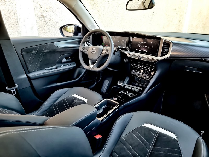 Το πάτωμα του Mokka-e είναι σχετικά ψηλό από το έδαφος, κάτι που ενισχύει την crossover εμφάνισή του. Η ησυχία κατά την κίνησή του είναι δεδομένη, λόγω της ηλεκτρικής «φύσης» του, και η ευρυχωρία στο εσωτερικό του είναι καλή, για όχημα της κατηγορίας του. Το νέο μοντέλο είναι ευκολοδήγητο και η διαμόρφωση του ταμπλώ τέτοια ώστε να έχει ως επίκεντρο τον οδηγό, καθώς η έγχρωμη οθόνη αφής 10,0 ιντσών στην κεντρική κονσόλα είναι στραμμένη προς αυτόν. Επίσης, στον πίνακα οργάνων υπάρχει μία (έγχρωμη) οθόνη 12,0 ιντσών.