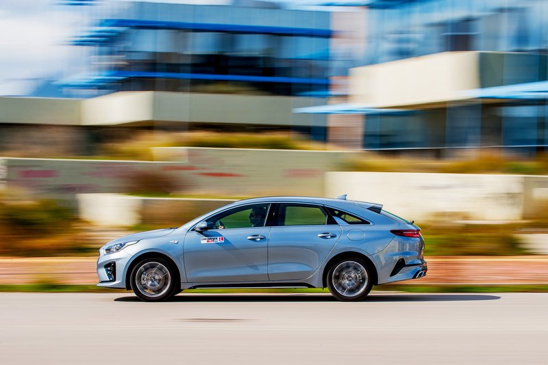 Επί των μηχανολογικών λύσεων, οι Κορεάτες, κόντρα σε όλα, επένδυσαν σε λύσεις που οι Ευρωπαίοι τις βλέπουν κοστοβόρες και λιγότερο ελκυστικές. Παράδειγμα, αποτελεί η φιλοσοφία αναρτήσεων με γόνατα ΜακΦέρσον εμπρός και διπλά ψαλίδια πίσω. Ή ο turbo βενζινοκινητήρας των 1.400 cc και των 140 ίππων, παρότι υπάρχει downsized λύση, η «ομορφιές» έρχονται με αυτό το μοτέρ, το οποίο «αρπάζει» από τις 2.000 rpm και παραμένει ολοζώντανο για ένα μεγάλο εύρος στροφών δίνοντας μια σπορτίφ νότα. Στη βάση αυτή έχουμε ένα πολύ άκαμπτο αμάξωμα (ίδια ακαμψία με αυτήν του Ceed hatchback περιγράφουν οι Κορεάτες μηχανικοί), χορταστικά ελαστικά της Michelin αλλά και ρύθμιση ανάρτησης που θυμίζει λιμουζίνα. Προσθέστε σε αυτά την καλύτερη αεροδυναμική λόγω σχεδίασης και στησίματος κι έχετε ένα σύνολο που τα καταφέρνει εξίσου καλά τόσο στην εθνική οδό και στην καθημερινή μετακίνηση όσο και σε μια πιο σβέλτη αποστολή. Είναι λοιπόν ενδιαφέρον οδηγικά το αυτοκίνητο, ευχάριστα ακριβές και άνετο σε όλες τις περιπτώσεις. Είναι δε και πιο ήσυχο συγκριτικά με το Ceed hatchback όπως κατέγραψαν τα μετρητικά μας όργανα. Στρίβει με κάποιες παραπάνω κλίσεις –η αλήθεια είναι- αλλά παρά τις διαστάσεις του δε δείχνει να πτοείται και πατά πάντα και παντού καλά. Πόσο καλά; Τόσο που όταν ήρθε η ώρα της μέτρησης φρένων είδαμε 49,3 m από τα 120 km/h μέχρι ακινητοποίησης. Για την ιστορία, τέτοια σχεδόν επίδοση σημείωσε το Nissan GT-R (!). Πέραν αυτών για τις λοιπές περιπτώσεις στις οποίες χρειάζεται έξτρα ασφάλεια το Proceed ενσωματώνει ακόμη αυτόνομο φρενάρισμα σε αστικές συνθήκες, ενεργό σύστημα διατήρησης λωρίδας, προειδοποίηση μετωπικής σύγκρουσης, προειδοποίηση απόσπασης προσοχής, αυτόματη μεγάλη σκάλα προβολέων είναι τα συστήματα που προστίθενται στο πλήρες ESP, το σύστημα υποβοήθησης εκκίνησης σε ανήφορα και το σύστημα ελέγχου πίεσης ελαστικών.