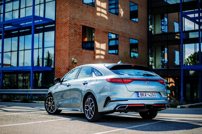Τούτο, το τελευταίο απευθύνεται σε ένα πιο νεανικό/δυναμικό/trend setting κοινό. Σε ανθρώπους που μπορούν να γίνουν πρεσβευτές της φίρμας, αν και το αυτοκίνητο από μόνο του μπορεί σχεδόν να μιλήσει όχι μόνο στη λογική (είναι ένα πρακτικό σκαρί) αλλά και στο συναίσθημα διότι –ναι, το είπαμε ήδη- είναι πανέμορφο. Μπορεί η εμπρός όψη να σε προϊδεάζει για το τι βλέπεις μπροστά σου, όμως όσο το… κλώθεις και κινείσαι από το πλάι, ανακαλύπτεις τη διαφοροποίηση στις γραμμές, ώσπου έρχεσαι στο πίσω μέρος και στέκεσαι για ώρα σχεδόν σοκαρισμένος, θαυμάζοντας τη σχεδίασή του. Είναι μακράν ό,τι πιο καινοτόμο, δυναμικό και ευφυές έχουν να επιδείξουν οι Κορεάτες στο mainstream πεδίο (πιο αυθεντικό και από το Hyundai i30 Fastback). Τα πίσω φώτα μάλιστα μαζί με τις απολήξεις της εξάτμισης είναι σήμα-κατατεθέν του αυτοκινήτου. Συνολικά υπάρχουν κάποιες ιδιαιτερότητες και παραλλαγές συγκριτικά με το απλό Ceed. Έτσι η shooting brake παραλλαγή του είναι προφανώς μακρύτερη κατά 295 mm και χαμηλότερη κατά 25mm αλλά βρίσκεται και 5 mm πιο κοντά στο έδαφος.