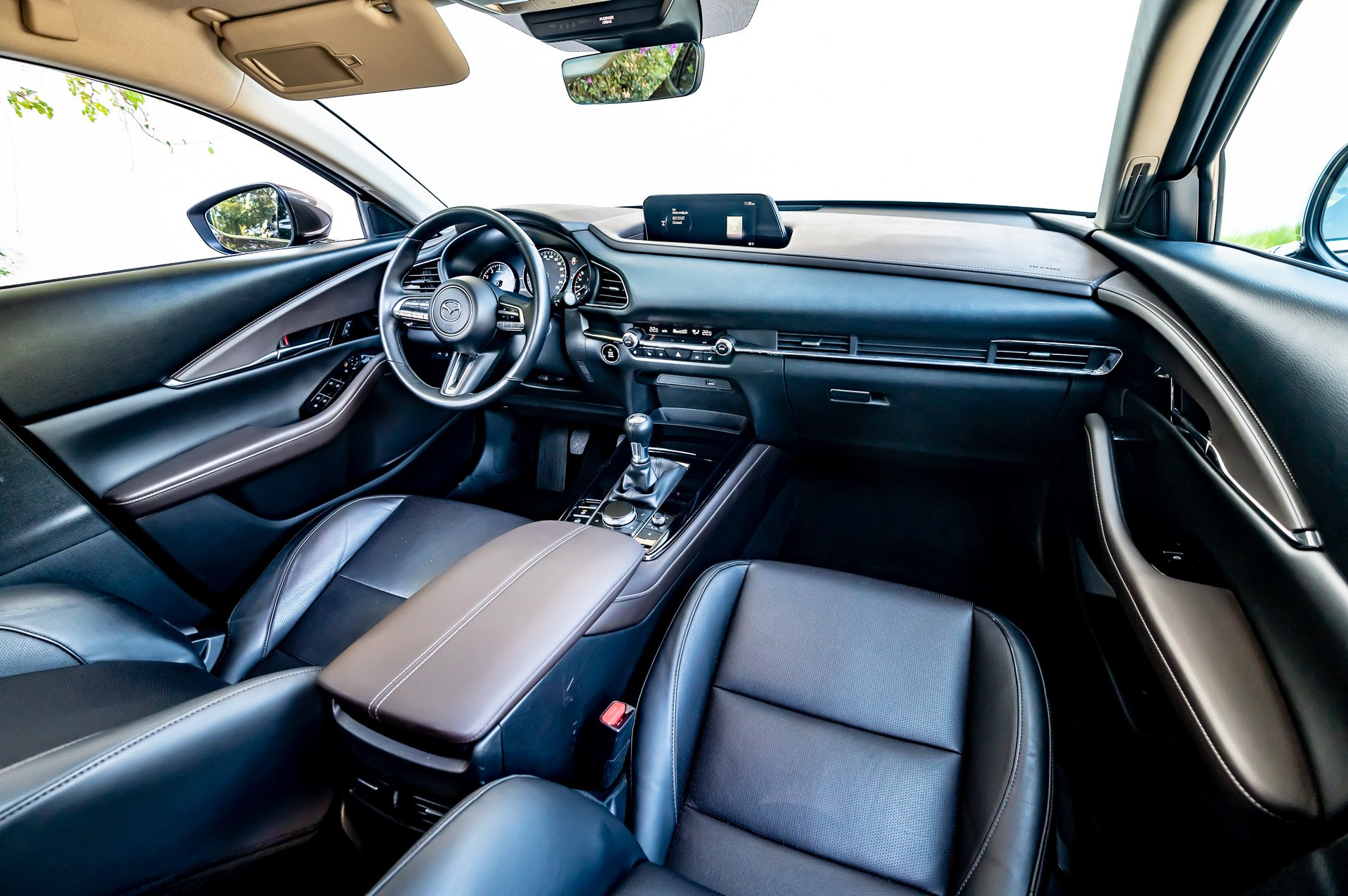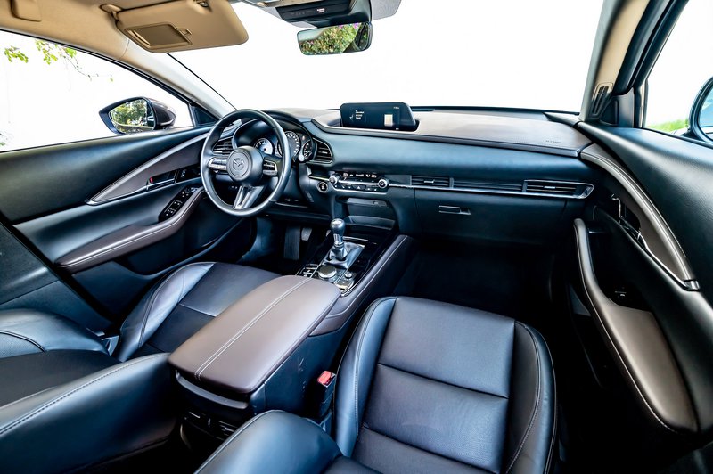 Κατά τα άλλα, το CX-30 παραμένει όπως το γνωρίζουμε. Εντός προσφέρει ένα σχετικά ευρύχωρο σαλόνι, με ικανοποιητικό χώρο ακόμα και για τους πίσω επιβάτες. Το ταμπλό του χαρακτηρίζεται από ένα κομψό σχεδιασμό, ενώ και τα χρησιμοποιούμενα υλικά αφήνουν αυτή την premium αίσθηση που επιθυμεί να προσδώσει ο Ιάπωνας κατασκευαστής.