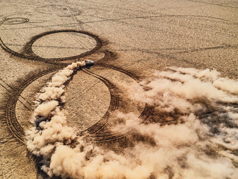 Tα παράθυρα εξερράγησαν. Το αυτοκίνητο πατήθηκε, η πίσω πτέρυγα ισοπεδώθηκε, το κάλυμμα του αριστερού εξωτερικού καθρέφτη έπεσε στο έδαφος. Οι λασπωμένοι προφυλακτήρες έσπασαν, οι πόρτες συσπάστηκαν και λύγισαν, οι προστατευτικές ποδιές ακούμπησαν στο έδαφος πριν σπάσουν εντελώς. Ο ήχος θύμιζε αμυδρά αυτόν που κάνουν τα πατατάκια σε γεμάτο στόμα. Ακολούθησε μια σιωπή, σαν να είμαστε προσηλωμένοι. Η πρέσα σηκώθηκε αποκαλύπτοντας μία τετραγωνισμένη πλάκα από λευκό περλέ μέταλλο. Λιγότερο από ένα λεπτό πριν, αυτή η μάζα ήταν ένα αυτοκίνητο…
