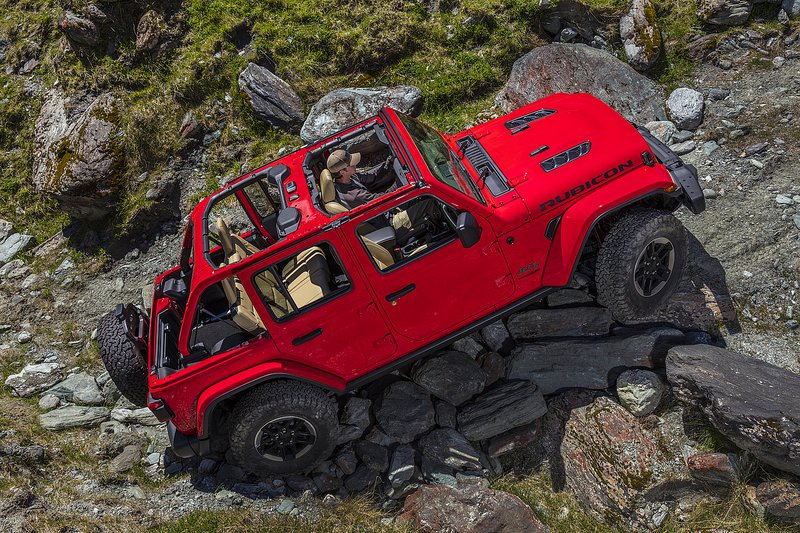 Σχετικά με τα υπόλοιπα ζητήματα της μετάδοσης της κίνησης, αυτά ελάχιστα έχουν αλλάξει από την εποχή της προηγούμενης γενιάς JK. Το Rubicon εφοδιάζεται και στους δύο άξονες με ηλεκτρονικό μπλοκέ, με μία ηλεκτρονικά αποσυνδεόμενη αντιστρεπτική εμπρός και ένα κιβώτιο υποπολλαπλασιασμού με σχέση 4,00:1. Ωστόσο, το νέο Wrangler δε διαθέτει ρυθμιζόμενη καθ’ ύψος αερανάρτηση, ούτε σύστημα «αναγνώρισης» επιφάνειας κίνησης. Αντί όλων αυτών, ο οδηγός λειτουργεί ουσιαστικά αυτόνομα, επιλέγοντας μόνος του τη σχέση της αρεσκείας του στο κιβώτιο ταχυτήτων, ποιοι θα είναι οι κινητήριοι τροχοί, ποια διαφορικά θα είναι κλειδωμένα και πολλά πράγματα ακόμη.