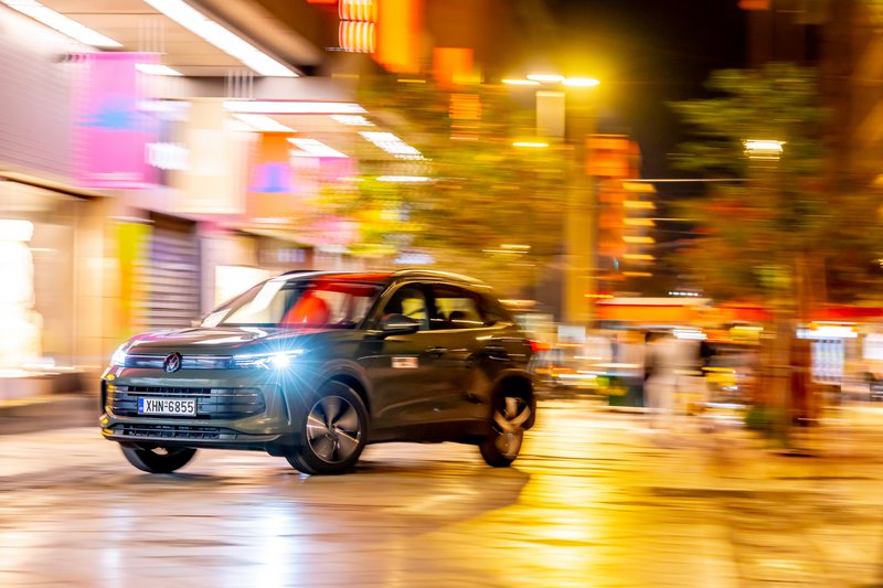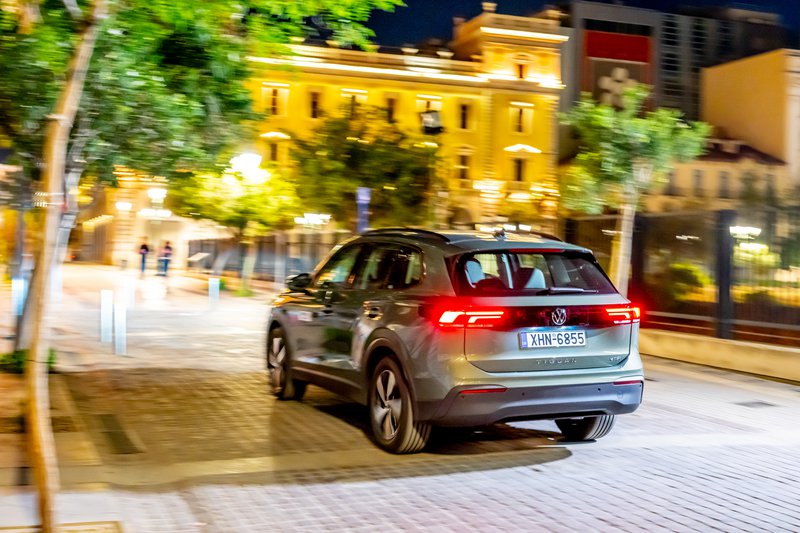 Στις ορεινές διαδρομές, το νέο πλαίσιο θα κρύψει καλά τον όγκο του Tiguan, τόσο σε ό,τι αφορά στους χειρισμούς και στον έλεγχο από τον οδηγό, όσο και στην άνεση που προσφέρει στους επιβαίνοντες. Εδώ σημαντικό ρόλο παίζουν και τα νέα αμορτισέρ με τεχνολογία διπλής βαλβίδας για τη ροή του λαδιού (βέλτιστο bound/rebound). Το νέο Tiguan αφορά σε ένα υπερσύγχρονο SUV που μπορεί να ισορροπήσει ιδανικά ανάμεσα στην άνεση και στο κράτημα (τον… παρονομαστή τον ορίζει ο οδηγός, ανάλογα με την παραμετροποίηση που θα επιλέξει), προσφέροντας το αίσθημα της ασφάλειας. Η ανάρτηση είναι περισσότερο σεταρισμένη στο κράτημα (σ.σ. γερμανική σχολή), κάτι που σημαίνει πως η απόσβεσή της στο έντονο ανάγλυφο ή στον επαρχιακό δρόμο είναι μέτρια, αποτέλεσμα, βεβαίως, και της μεγάλης διαμέτρου των τροχών με τα χαμηλοπρόφιλα ελαστικά που διέθετε το αυτοκίνητο της δοκιμής (Hankook Ventus Prime 3 X διαστάσεων 235/55-R18). Πολύ καλή η αίσθηση του συστήματος διεύθυνσης, τέλεια η ορατότητα προς όλες τις κατευθύνσεις, αποδοτικό το σύστημα πέδησης, γενικά έχεις την αίσθηση ότι οδηγείς ένα μοντέρνο, καλοφτιαγμένο, ευχάριστο και ανώτερης κατηγορίας SUV.