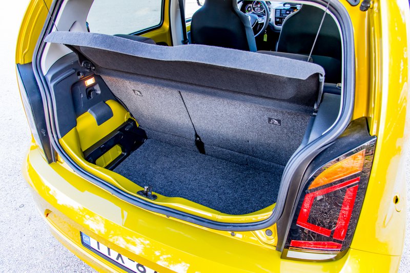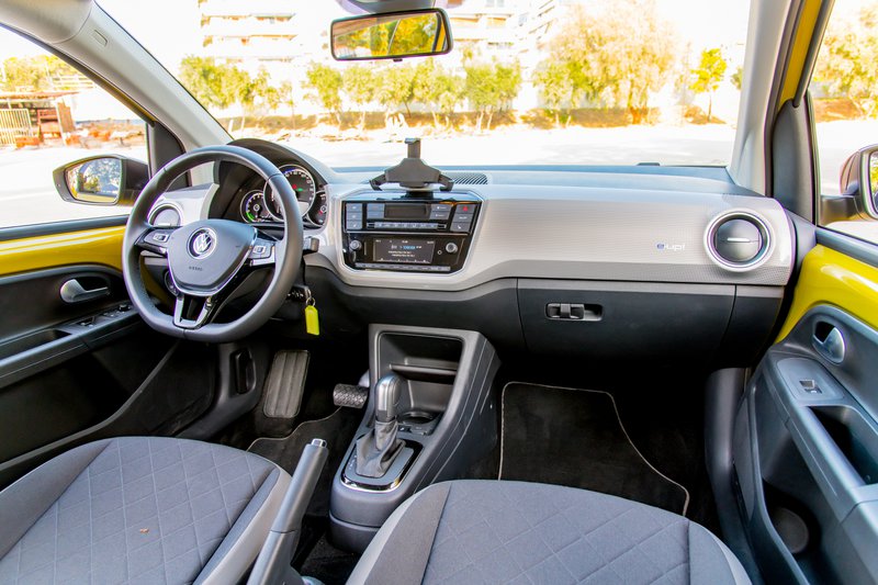 Στο εσωτερικό του, το e-up! δεν διαφέρει επί της ουσίας αναφορικά με την ευρυχωρία του από τις εκδοχές του μοντέλου με τους θερμικούς κινητήρες. Η τοποθέτηση τωv μπαταριών χαμηλά στο πάτωμα και κάτω από τα καθίσματα των επιβατών δεν έχει επηρεάσει αρνητικά τον διαθέσιμο χώρο γι’ αυτούς.