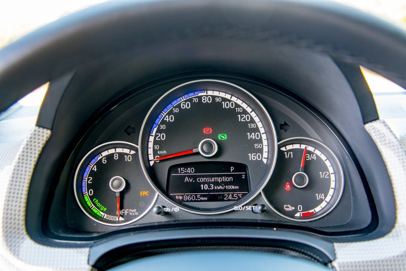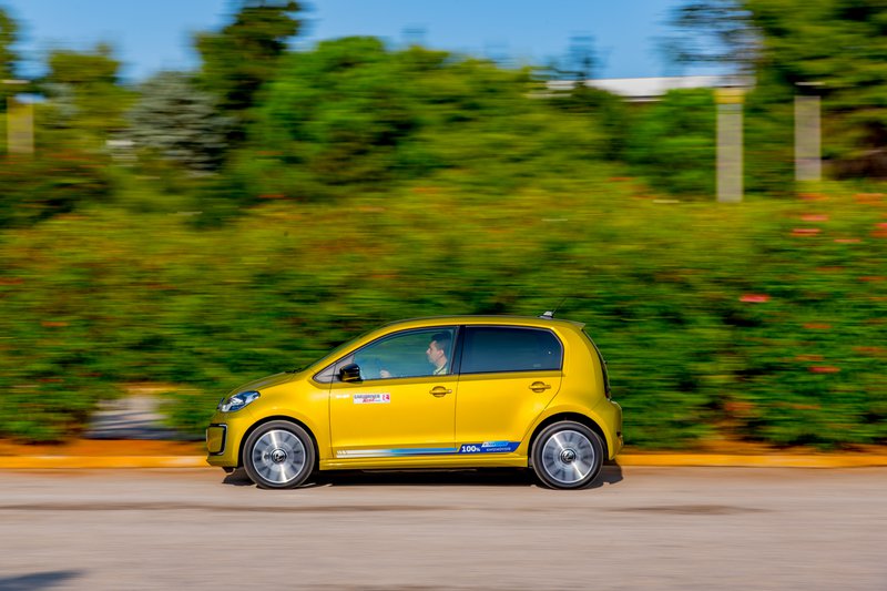 Όμως, το βάρος του οχήματος γίνεται αισθητό από τον οδηγό, ενώ αυτή δεν μπορεί να απορροφήσει τις ταλαντώσεις όπως πρέπει, πάντα. Το e-up! δεν έχει κανένα πρόβλημα να ακολουθήσει τη ροή της κίνησης στις ταχύτητες που αναπτύσσονται συνήθως εντός της πόλης.