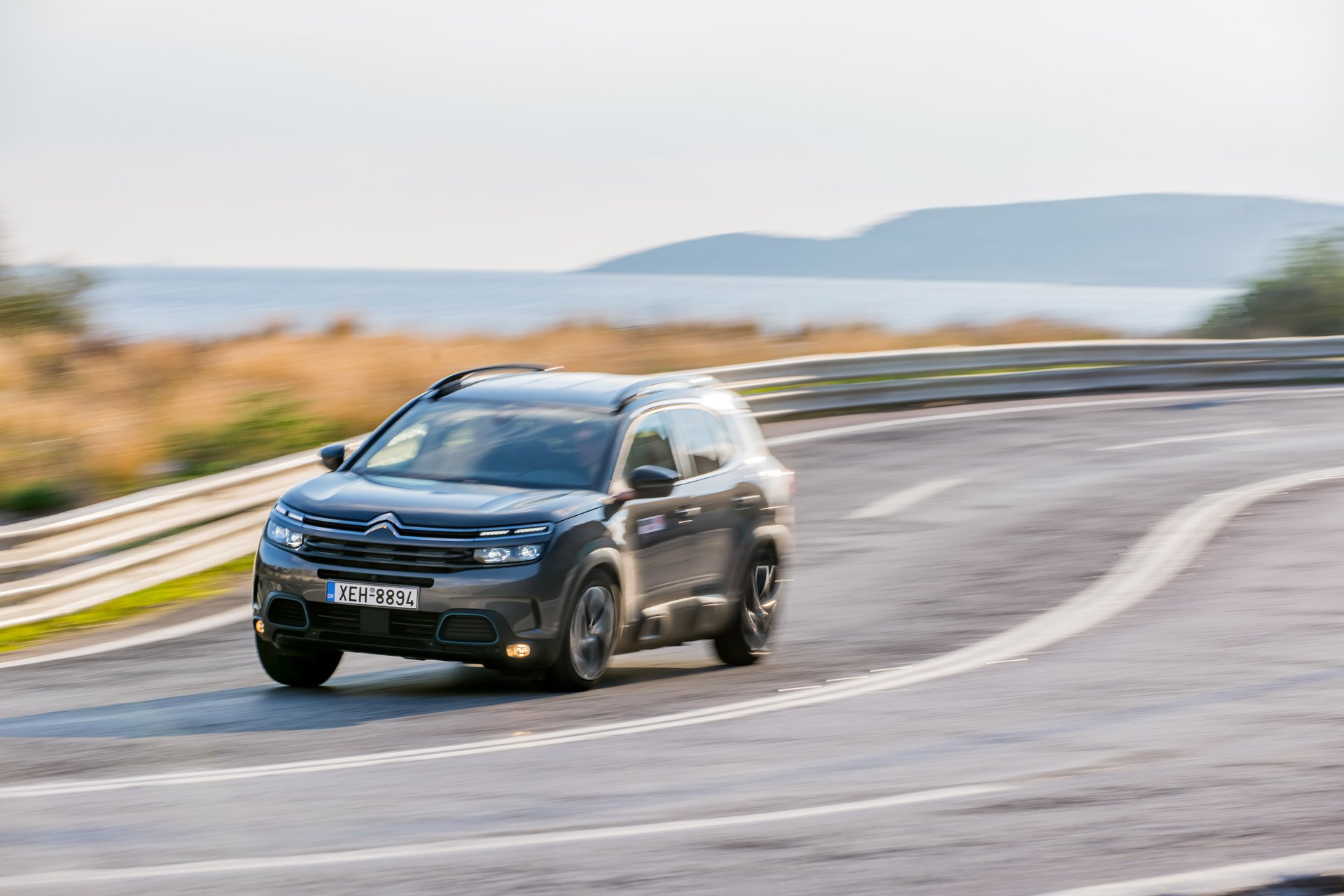 Το γεγονός ότι η Citroen έδινε ανέκαθεν βάση στην άνεση φαίνεται κι εδώ. Είναι οδοστρωτήρας το C5 Aircross σε κακό ανάγλυφο (έχει και 23 cm απόσταση το πάτωμα από το έδαφος), χωρίς να είναι πλαδαρό, χάρη στα εξελιγμένα αμορτισέρ με υδραυλικά στοπ που χρησιμοποιεί η φίρμα.