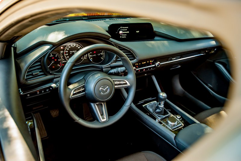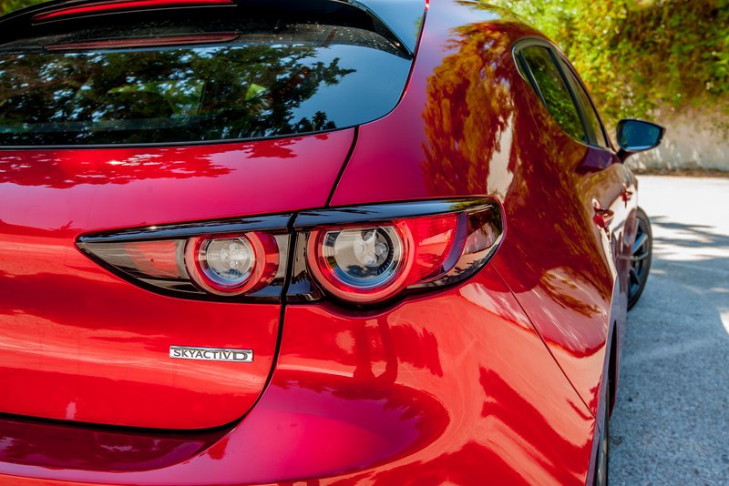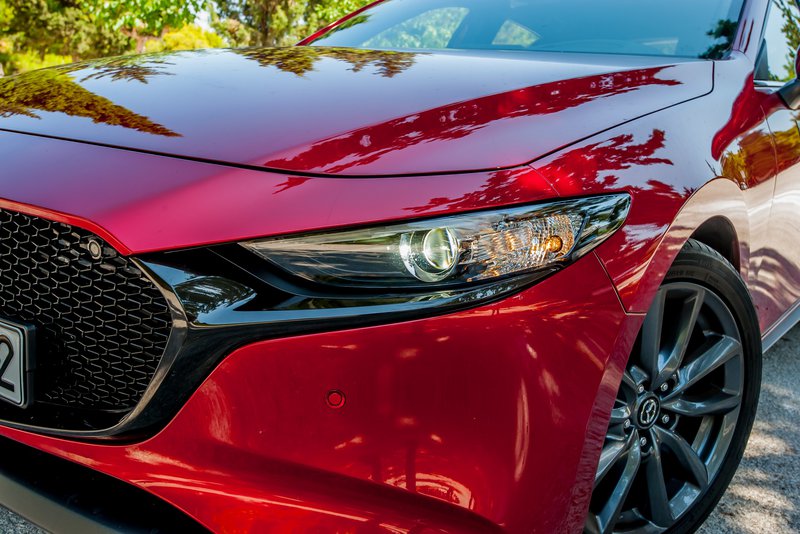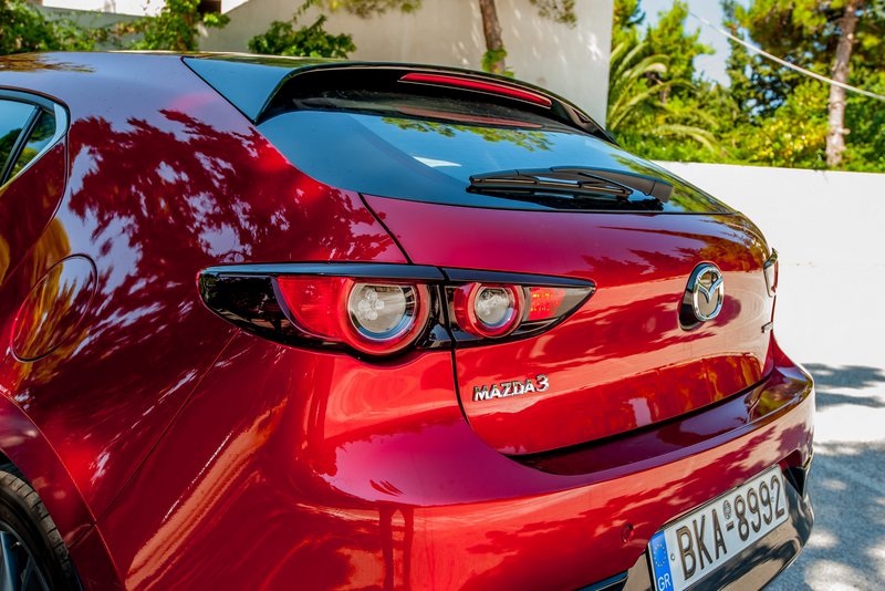 Αυτό το όμορφο, πεντάθυρο όχημα προκαλεί το ενδιαφέρον. Είτε από περιέργεια, είτε από νοσταλγία, πολλοί είναι αυτοί που συνωστίζονται κοντά του Είναι, βλέπετε, κι αυτό το ξεχωριστό χρώμα του καμπυλόσχημου αμαξώματος, με τις έντονες ακμές σε συγκεκριμένα μέρη του (κυρίως εμπρός), που το κάνει να ξεχωρίζει και να προσελκύει. Αυτό που οι άνθρωποι της ιαπωνικής εταιρείας ονομάζουν «Kodo», δηλαδή η πρακτική να εξακολουθούν να σχεδιάζουν και να διαμορφώνουν σε σημαντικό βαθμό με το χέρι τις επιφάνειες του οχήματος, δημιουργεί συναισθήματα με τρόπο που δεν συμβαίνει με τα –κατά τα άλλα ικανά– ανταγωνιστικά μοντέλα του Mazda 3.