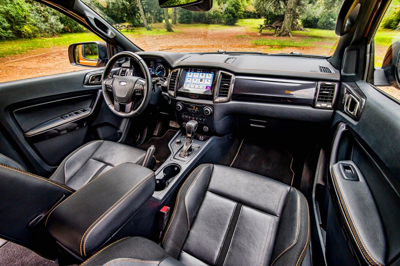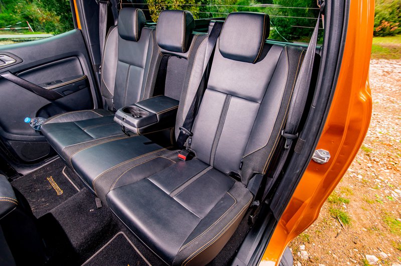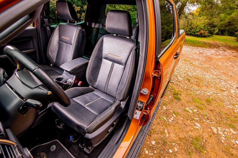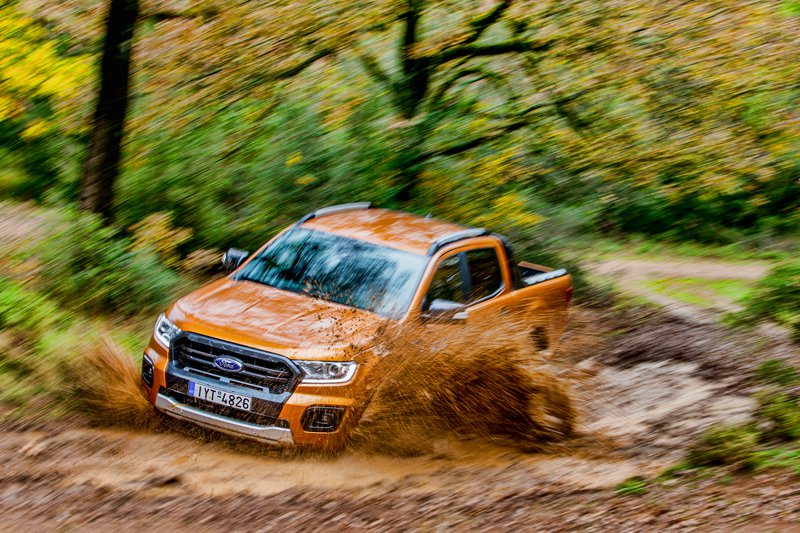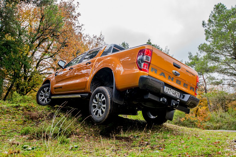 Και με απόσταση 237mm από το έδαφος και διέλευση υδάτινου κωλύματος έως 800 mm (έχει και κάλυμμα προστασίας κάτω από τον κινητήρα) η λέξη «ικανότητα» δείχνει να ταιριάζει γάντι. Και τούτη, η Wildtrak έκδοση δείχνει διαφορετική από τα απλά Ranger σε κοσμητικό επίπεδο και περισσότερο εύπεπτη από το macho Raptor με ζάντες ελαφρού κράματος 18", πλαϊνά σκαλοπάτια με πλαστική επένδυση και ένθετα διακοσμητικά, σπορ αεροδυναμική αψίδα με ενσωματωμένο φωτισμό της καρότσας, μάσκα, λαβές θυρών και χαλύβδινο σκαλοπάτι πίσω με φινίρισμα τιτανίου και ράγες οροφής με φινίρισμα αλουμινίου.