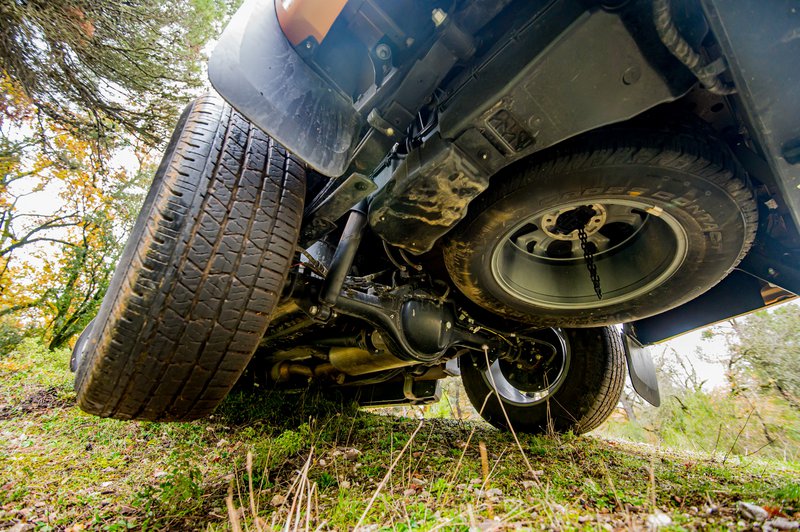 Έχει όμως και αρκετά κοινά με αυτό όπως είναι ο τετρακύλινδρος δίλιτρος EcoBlue diesel κινητήρας με Bi-turbo, ισχύ 213 ίππων και μέγιστης ροπής 500 Nm, και ένα κορυφαίο σε λειτουργία 10τάχυτο αυτόματο κιβώτιο (το ίδιο που φορά το Last American hero Ford F-150 pick-up και φυσικά η Ford Mustang). Αλλά και στάνταρ σύστημα τετρακίνησης με δυνατότητα κίνησης στους δύο ή τέσσερις τροχούς αλλά και υποπολλαπλασιασμό που επιλέγονται από αυτό το μικρό μπουτόν στη βάση του επιλογέα μαζί με μπλόκε διαφορικό πίσω. Η δε Η καρότσα έχει διαστάσεις 541mm βάθος, 1.560mm πλάτος και 1.613mm μήκος και το αυτοκίνητο προσφέρει γωνία προσέγγισης 29 μοιρών και γωνία διαφυγής 21 μοιρών.