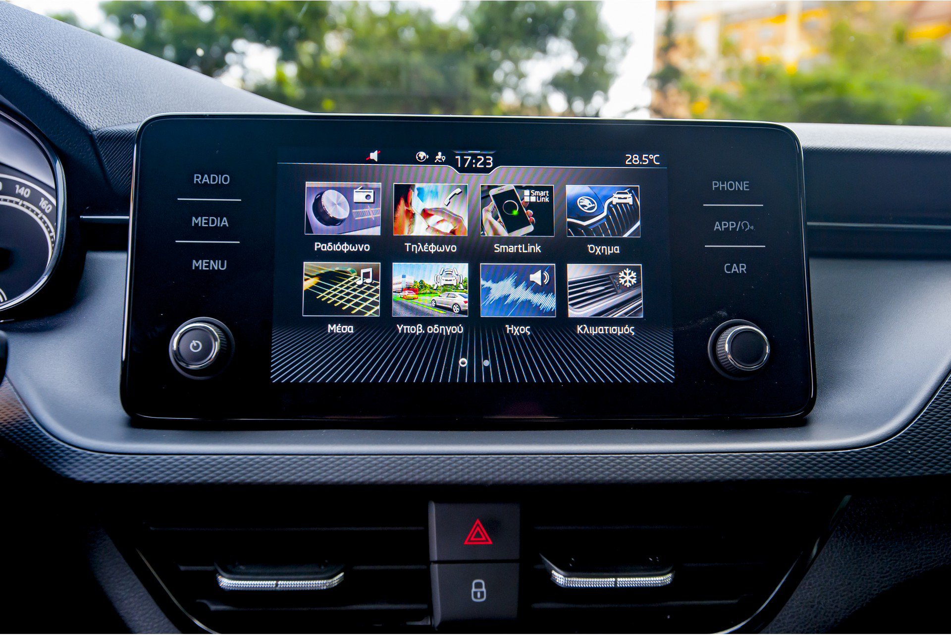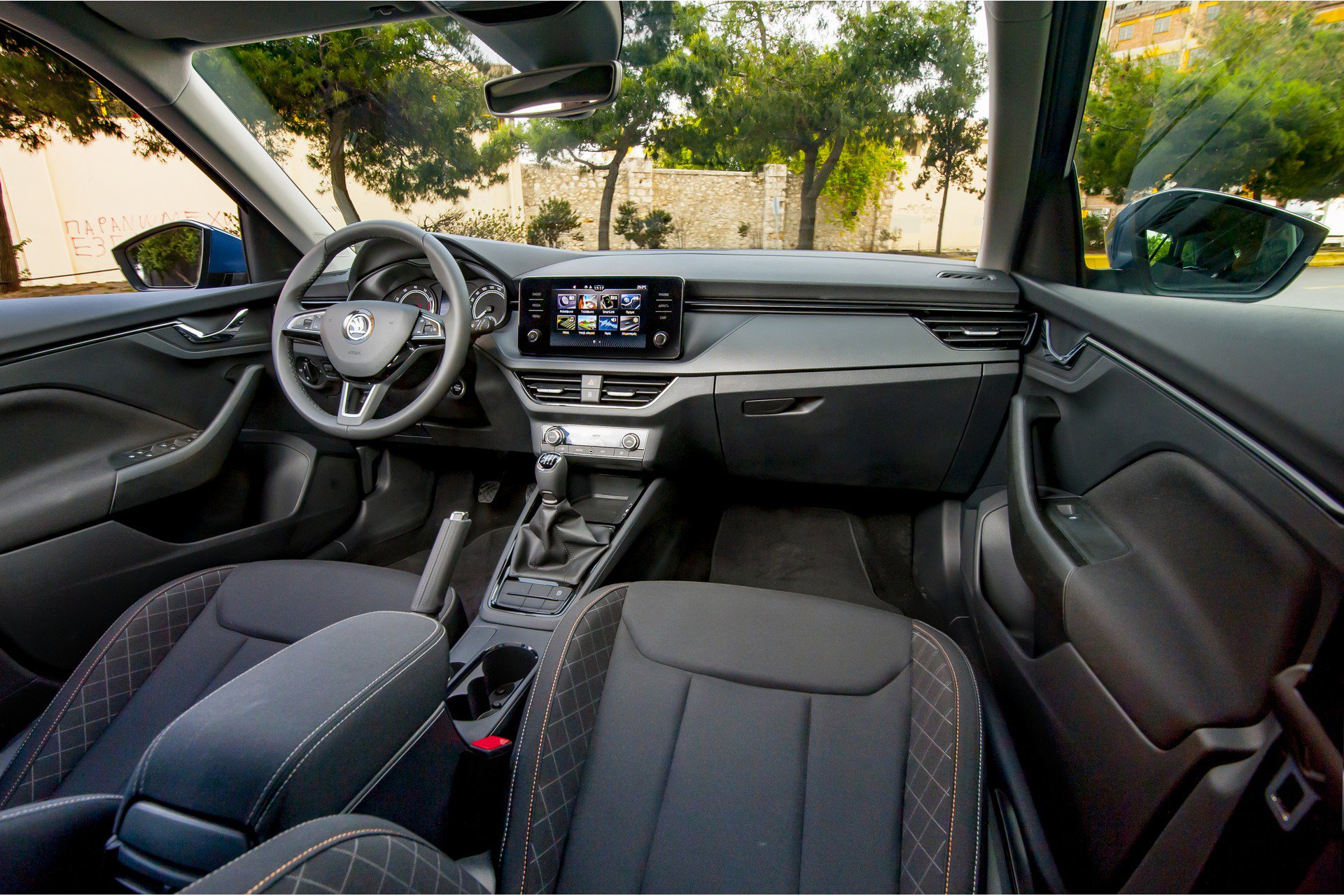 Το εσωτερικό είναι μια ευχάριστη έκπληξη και μάλιστα δια χειρός Δημήτρη Δαρκούδη, επικεφαλής σχεδιασμού στη Skoda. Επενδύσεις μοντέρνες σε ένα σύνολο που τιμά τη μάρκα με την ποιότητα και τη συνέπεια στα σχεδιαστικά και κατασκευαστικά της στάνταρ. Μαλακά πλαστικά επάνω σκληρά κάτω, σε ένα προσεγμένο ταμπλό με περιποιημένη, τακτοποιημένη εργονομία της οποίας το μόνο φάουλ (θα το μάθουμε σιγά-σιγά) έχει να κάνει με τη διαχείριση των συστημάτων κλιματισμού. Επίσης θα θέλαμε δύο κανονικές υποδοχές USB και όχι Type C στη βάση της κονσόλας. Χώροι για μικροαντικείμενα υπάρχουν και συνολικά δίνει την αίσθηση του νοικοκυρεμένου. Οι χώροι για επιβάτες έχουν επίσης την τιμητική τους. Το πορτμπαγκάζ λόγω των δοχείων αερίου έχει χωρητικότητα 278 λίτρων, η οποία μπορεί να αυξηθεί στα 1.273 λίτρα με την αναδίπλωση της ασύμμετρης (σε αναλογία 60:40) πλάτης του πίσω καθίσματος, που προαιρετικά μπορεί να διαθέτει και κεντρικό υποβραχιόνιο.