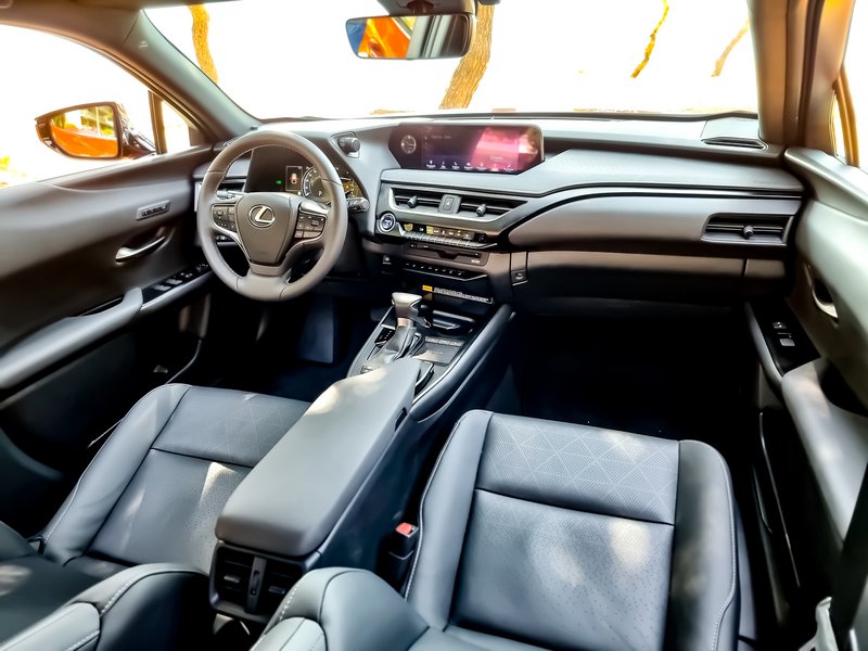Στο εσωτερικό είναι πολλές οι ιαπωνικές λέξεις που επιστρατεύουν οι marketeers της Lexus για να τονίσουν τον αριστοτεχνικό τρόπο κατασκευής των UX. Δεν χρειάζονται. Ο τρόπος κατασκευής είναι απλώς… αριστοτεχνικός. Πολλές τσιμούχες που σφραγίζουν μια καμπίνα, πακτωμένη με καλά υλικά συναρμολογημένα όμορφα. Θέλετε κι άλλο… μαζοχισμό; Το UX 300e διαθέτει θερμαινόμενα πίσω καθίσματα που βοηθούν την αυτονομία. Πώς; Με τη θερμότητα που εκλύεται από τις αερόψυκτες μπαταρίες, θερμαίνοντας τα πίσω καθίσματα, δεν δαπανάται ενέργεια για κλιματισμό! Σπέσιαλ ραφές στα δερμάτινα καθίσματα, ασύρματα φωτιστικά χειριστήρια, «έξυπνοι» υαλοκαθαριστήρες που δεν λερώνουν όσους επιβιβάζονται ή αποβιβάζονται, ο τρόπος που ανοιγοκλείνουν τα ηλεκτρικά παράθυρα, που είναι επιπέδου… S-Class, ενώ το ίδιο ισχύει για το άνοιγμα κλείσιμο των θυρών. Για να διασφαλιστεί, μάλιστα, ο σωστός ήχος κλεισίματος, οι τεχνίτες Takumi "Lexus" ακούν και προσαρμόζουν κάθε πόρτα UX σε μια εγκατάσταση με την ονομασία "Quiet Room", πριν το αυτοκίνητο φύγει από το εργοστάσιο Kyushu όπου κατασκευάζεται!