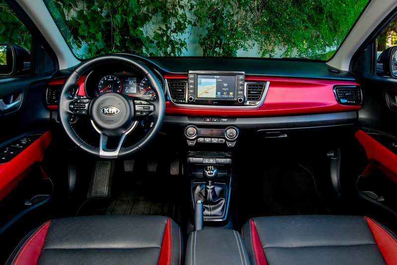 Το ταμπλό είναι σχετικά λιτά σχεδιασμένο, με τις παράλληλες γραμμές να το προσδιορίζουν και να δίνουν την αίσθηση ότι είναι ευρύτερο από ό,τι στην πραγματικότητα. Η αναβάθμιση των πλαστικών που απαρτίζουν είναι προφανής, σε σχέση με ό,τι ίσχυε στην προηγούμενη «γενιά», τόσο οπτικά όσο και στην αφή. Όμως, το γεγονός ότι στην ΚΙΑ δεν επέλεξαν να έχουν και μαλακό υλικό στο ταμπλό, τους κάνει να υστερούν έναντι των ευρωπαϊκών ανταγωνιστικών μοντέλων σε αυτόν τον τομέα. Το εσωτερικό είναι ευρύχωρο για τουλάχιστον τέσσερις ενήλικους, με ικανό ωφέλιμο χώρο για τους πίσω. Η επιβίβαση και αποβίβαση στο και από το όχημα είναι σχετικά εύκολη, καθώς οι πόρτες ανοίγουν υπό μεγάλη γωνία. Γενικά, στο εσωτερικό του Rio έχεις την αίσθηση ότι βρίσκεσαι σε όχημα μεγαλύτερης κατηγορίας, χάρη στην ευρυχωρία του.