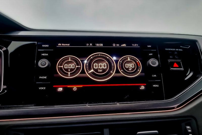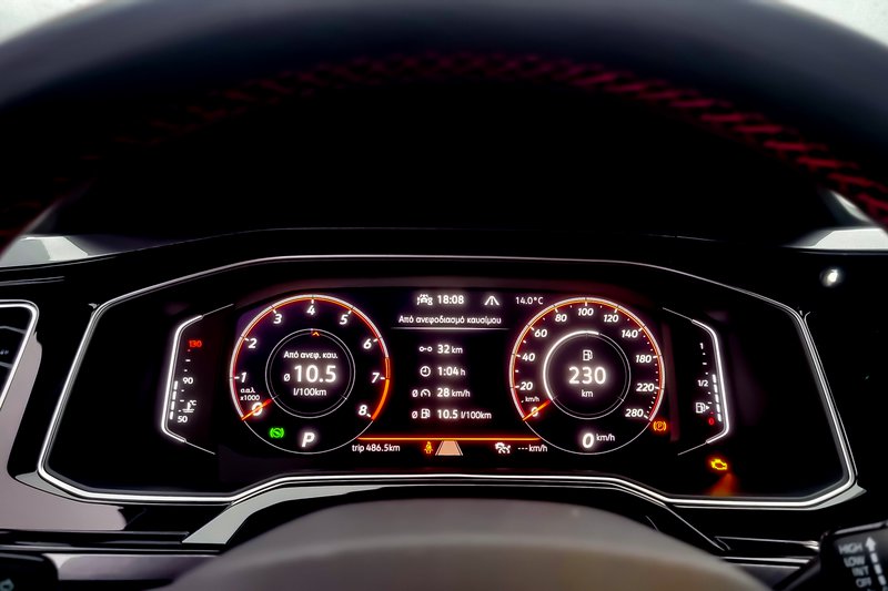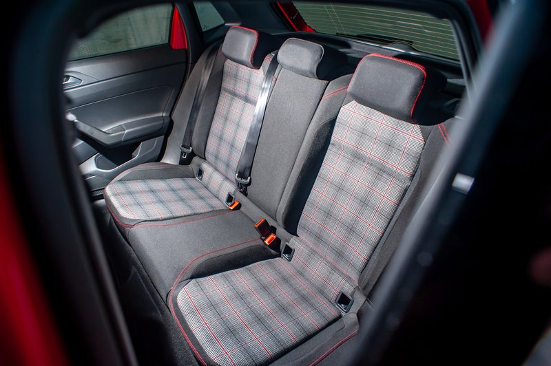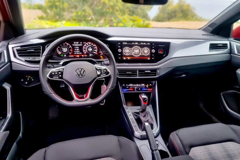 Κάθε GTI που σέβεται τον εαυτό του έχει καθίσματα με καλή πλευρική στήριξη και το Polo δεν ξεφεύγει από τον κανόνα. Όμορφη πινελιά οι καρώ ταπετσαρίες που μας θυμίζουν το Golf GTI πρώτης γενιάς. Από εκεί και πέρα, την παράσταση κλέβει ο ψηφιακός πίνακας οργάνων Digital Cockpit Prο με βελτιωμένα γραφικά και διαγώνιο 10,25‘’, που συνδυάζεται με το σύστημα infotainment των 9,2‘’, το οποίο, εκτός από τις συνηθισμένες δυνατότητες, μετατρέπεται και σε μια νοητή συνέχεια του πίνακα οργάνων με ενδείξεις όπως η πίεση του turbo, η θερμοκρασία νερού και οι επιταχύνσεις g στον οριζόντιο άξονα. Μας έλειψαν, ωστόσο, οι χειρολαβές οροφής, ενώ θα θέλαμε και καλύτερη ποιότητα πλαστικών στις επενδύσεις των θυρών.