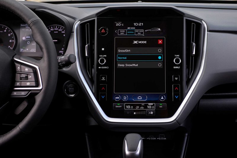 Εκεί ξεδίπλωσε η τετρακίνηση κάτω από τη μπαγκέτα του ‘’X-Mode’’, που συντονίζει ιδανικά τις λειτουργίες του κινητήρα, του σασμάν, της τετρακίνησης και των φρένων, όλες τις εντυπωσιακές αρετές της στο έπακρο. Χάρη σε αυτό τον εξαιρετικά αποτελεσματικό συνδυασμό κατεβαίνει το αυτοκίνητο σε χωμάτινα μονοπάτια που τρομάζουν με την κλίση τους φρενάροντας με απόλυτη ασφάλεια και ο οδηγός επικεντρώνεται μόνο στο τιμόνι. Αντίστοιχα απλή γίνεται και η αναρρίχηση σε πλάγιες με κλίσεις έως 30 μοιρών, το πέρασμα από σημεία με έντονες αυλακώσεις και η εκκίνηση σε ανηφόρα με γαρμπίλι.