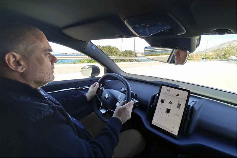Και όσο αφαιρετικό φαίνεται εξωτερικά, άλλο τόσο είναι και στο εσωτερικό, με τη μία μεγάλη οθόνη 12,3” που κάνει…τα πάντα. Συνάμα, χωρίς να του φαίνεται είναι εξαιρετικά καλοεξοπλισμένο με συστήματα Pilot Assist για ασφαλή κίνηση και Park Pilot Assist και ειδικό σύστημα για να προφυλάσσονται πεζοί και ποδηλάτες αν ανοίξουμε αφηρημένοι την πόρτα μας και πολλά ακόμη που κάνουν τη ζωή εύκολη.