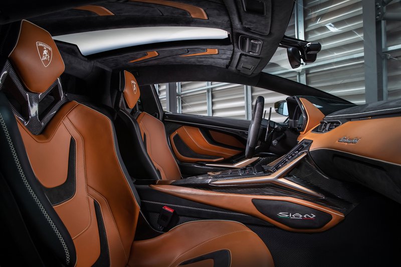 Το εσωτερικό της Sián FKP 37 σού δίνει την αίσθηση ότι είναι ποιοτικότερο από το αντίστοιχο της Aventador, όμως είναι μικρότερο σε ωφέλιμο ύψος. Στην κεντρική κονσόλα της υπάρχει μια νέα κάθετα τοποθετημένη οθόνη, εκεί όπου στη δεύτερη βρίσκεται μια μικρότερων διαστάσεων οριζόντια οθόνη.