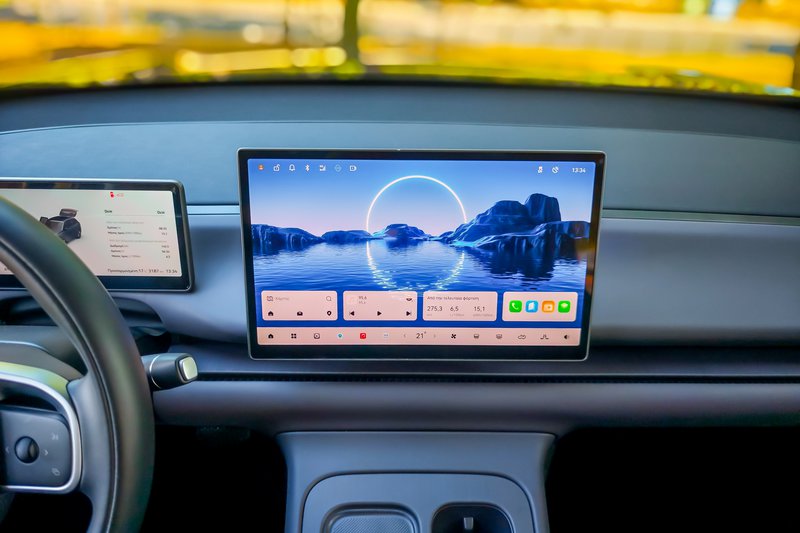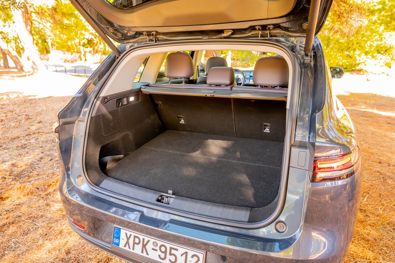Οι αναλογίες του το καθιστούν στιβαρό στο βλέμμα και ισορροπημένο στις διαστάσεις, αποπνέοντας τον οικογενειακό του χαρακτήρα. Η λογική της σχεδιαστικής λιτότητας συνεχίζεται και στο εσωτερικό. Το ταμπλό έχει οριζόντια ανάπτυξη σε σχήμα Τ, όπου δεσπόζουν δύο μεγάλες ψηφιακές οθόνες, μία για τον πίνακα οργάνων και μία για το σύστημα πολυμέσων. Ο σχεδιασμός είναι απλός και χωρίς περιττές λεπτομέρειες, με περιορισμένη χρήση φυσικών διακοπτών. Η εργονομία απαιτεί εξοικείωση, καθώς οι περισσότερες λειτουργίες περνούν μέσα από το μενού της κεντρικής οθόνης, όπως συμβαίνει σε μοντέλα που ακολουθούν τη φιλοσοφία της Tesla. Παρά τη μινιμαλιστική του προσέγγιση, το εσωτερικό εντυπωσιάζει με την ποιότητα κατασκευής και τη στιβαρότητα. Η συναρμογή είναι προσεγμένη, οι περισσότερες επιφάνειες έχουν μαλακή υφή και η ηχομόνωση βρίσκεται σε υψηλό επίπεδο. Οι χώροι είναι άνετοι για πέντε επιβάτες και ο χώρος αποσκευών, με χωρητικότητα 400 L, καλύπτει με άνεση τις ανάγκες μιας οικογένειας. Η πρακτικότητα είναι καλή, με επαρκείς θήκες και εργονομική κατανομή.