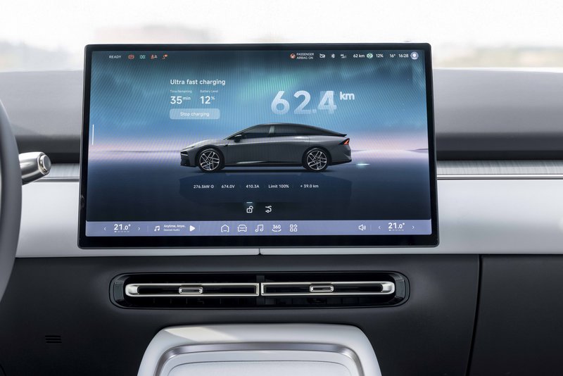 Το πιο εντυπωσιακό στοιχείο είναι η φόρτιση. Σε συμβατούς ταχυφορτιστές, η φόρτιση από 10% έως 80% μπορεί να ολοκληρωθεί σε μόλις 12 λεπτά, με ισχύ που φτάνει έως και τα 446 kW.