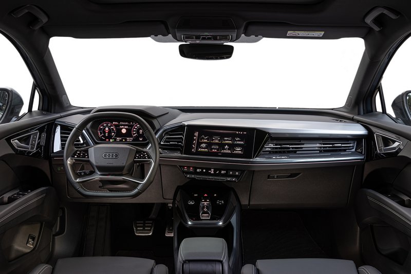 Το οδηγοκεντρικό ταμπλό από την άλλη είναι γεμάτο τεχνολογία με το Audi virtual cockpit και στάνταρ οθόνη αφής MMI στις 10,1 ίντσες. Η μπαταρία βρίσκεται τοποθετημένη μεταξύ των δύο αξόνων και η καθαρή ενεργειακή χωρητικότητά της ποικίλλει από 52 kWh για το πισωκίνητο Q4 35 e-tron των 170 ίππων, έως 77 kWh για τη μεγάλη μπαταρία στο επίσης πισωκίνητο Q4 40 e-tron των 204 ίππων και Q4 50 e-tron quattro το οποίο προσφέρει (όπως υποδηλώνει και η ονομασία του), τετρακίνηση, ισχύ 299 ίππων και 0-100 km/h σε 6,2 sec. Η αυτονομία αγγίζει τα 520 χιλιόμετρα κατά WLTP ανάλογα με την έκδοση ενώ με φόρτιση συνεχούς ρεύματος υψηλής ισχύος στα 125 kW, απαιτούνται μόλις δέκα λεπτά για αυτονομία περίπου 130 χιλιομέτρων.