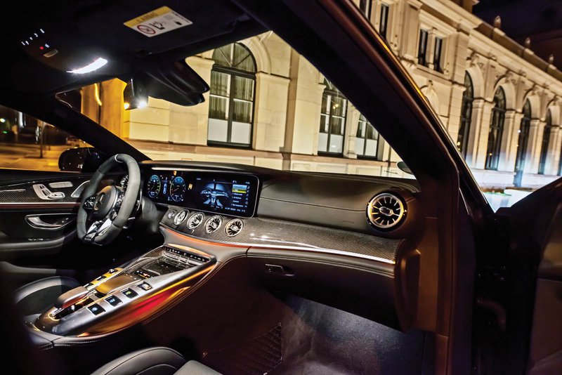 Tα πρώτα χιλιόμετρα μέχρι τον Μέλανα Δρυμό γίνονται με την GT. Πρώτη φορά νιώθεις τόσο έντονα ότι «φοράς» ένα αυτοκίνητο των 5 μέτρων, καθισμένος σε μια θέση οδήγησης βγαλμένη από FIA GT, ένα παχύ τιμόνι με αλκαντάρα, ένα σχεδόν αγωνιστικό μπάκετ και γύρω σου ένα Πλανητάριο από δεκάδες κουμπάκια και δυνατότητες παραμετροποίησης σχεδόν κάθε βίδας του αυτοκινήτου. Από τα πρώτα αναγνωριστικά χιλιόμετρα στην Autobahn αντιλαμβάνεσαι ότι πρόκειται για μία καθαρόαιμη AMG και όχι μία βελτιωμένη CLS με τα σήματα από το Affalterbach. Νιώθεις διαφορετικά από οτιδήποτε άλλο αυτής της εστέτ κατηγορίας και αυτό φαίνεται όπου και να κοιτάξεις γύρω σου.