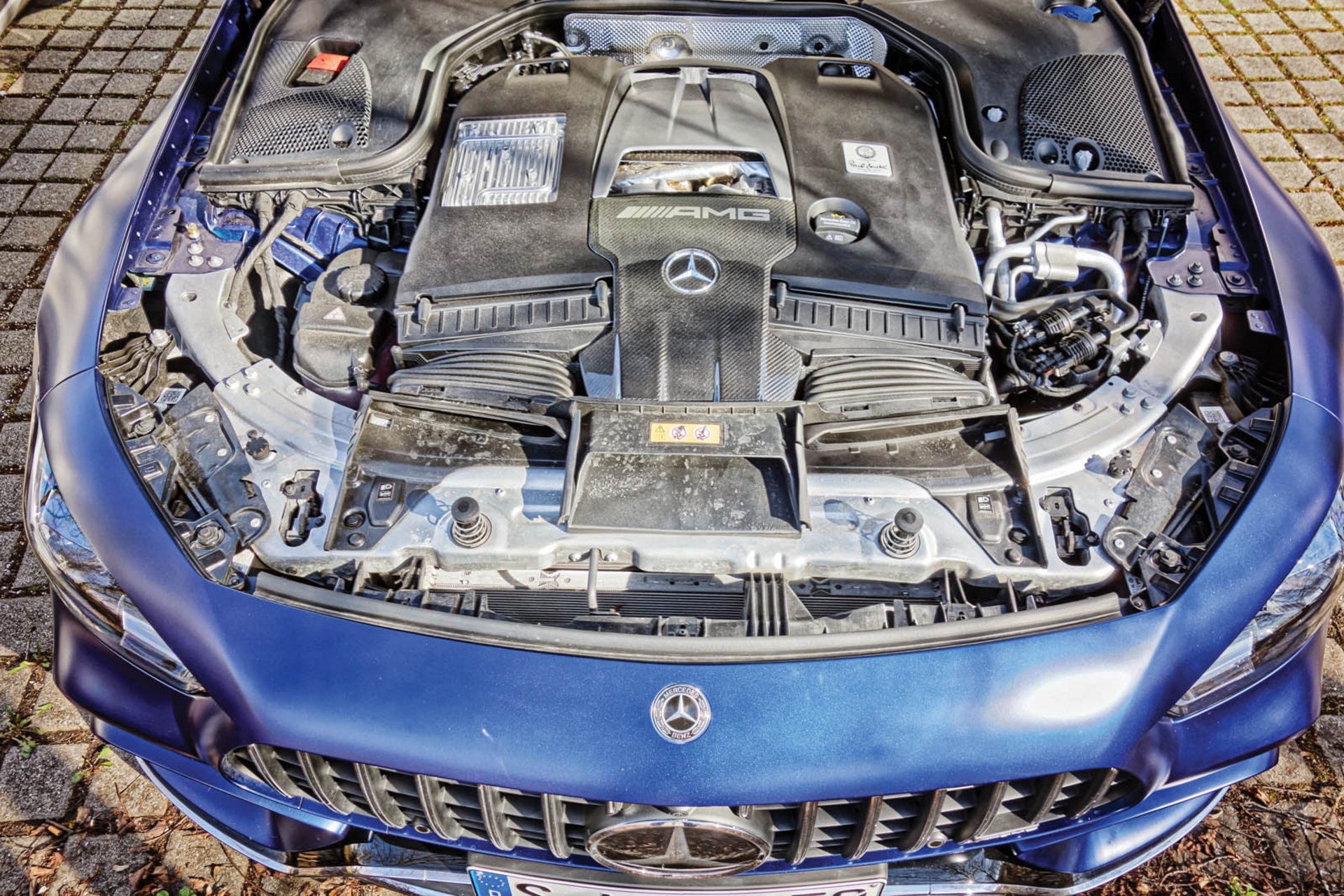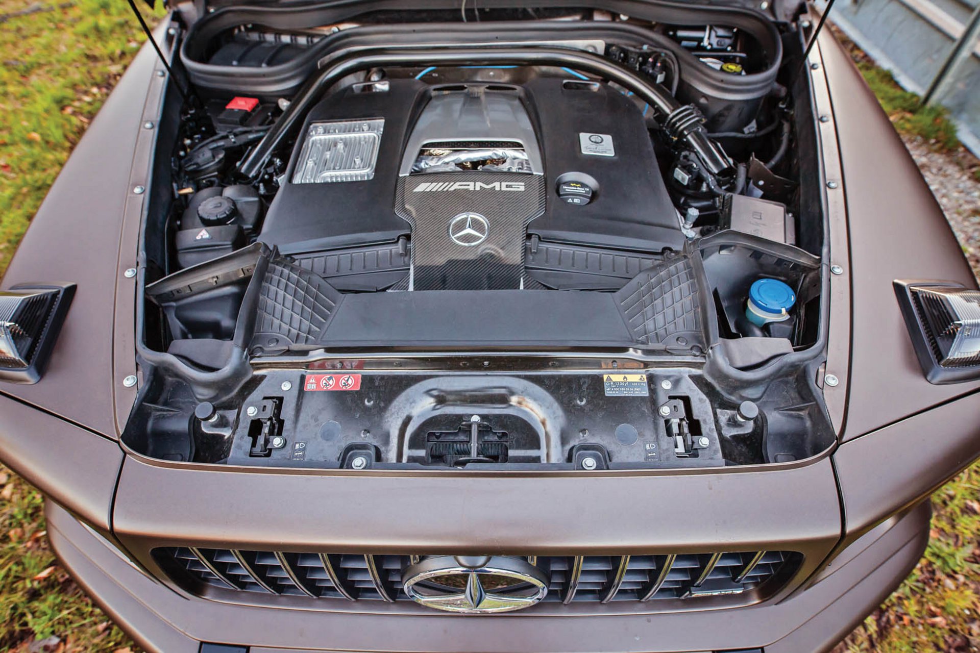 Ο V8 των 4 λίτρων αντικαθιστά τον προηγούμενο των 5,5 λίτρων, με την ισχύ ανεβασμένη στους 585 ίππους και αρκετές λεπτομέρειες που τον κάνουν πιο compact (οι τουρμπίνες είναι στο εσωτερικό του V) αλλά και πιο οικονομικό (για παράδειγμα υπάρχει η δυνατότητα λειτουργίας με 4 κυλίνδρους σε κατάσταση coasting). H κίνηση μεταδίδεται στους τέσσερις τροχούς μέσω του κιβωτίου AMG SPEEDSHIFT TCT 9G το οποίο έχει δεχθεί αρκετές αλλαγές στο software αποκλειστικά για το συγκεκριμένο μοντέλο. Η μόνιμη τετρακίνηση με πολύδισκο συμπλέκτη έχει κατανομή 60:40 πίσω και εμπρός αντίστοιχα, ενώ παραμένει η μοναδική δυνατότητα για κλείδωμα και των τριών διαφορικών αλλά και «κοντό» κιβώτιο με την τελική σχέση να είναι πλέον στο 2,93 (έναντι 2,1 στο παλαιό μοντέλο).