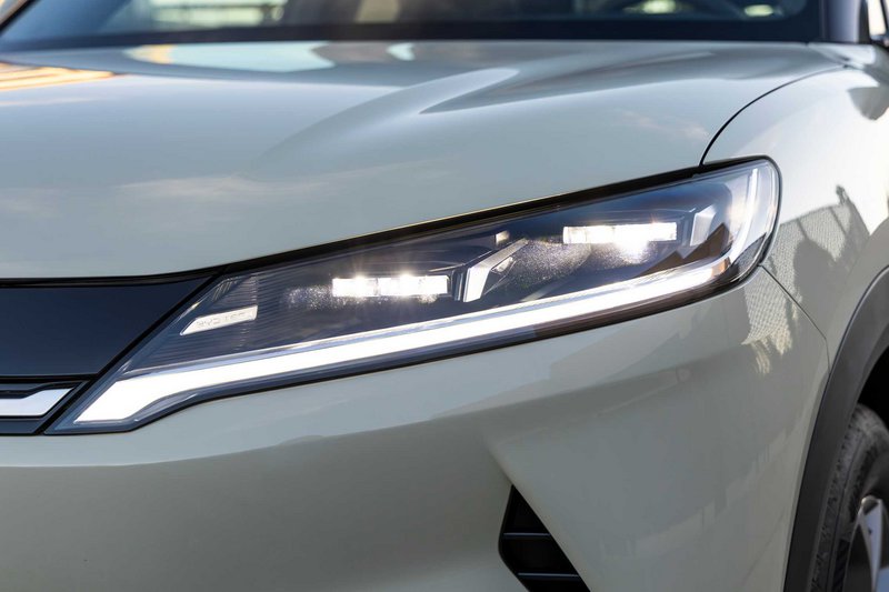Με μήκος 4.310 mm, πλάτος 1.830 mm και ύψος 1.675 mm, το Atto 2 σχεδιασμένο υπό την μπαγκέτα του διάσημου σχεδιαστή Wolfgang Egger, είναι όντως μικρότερο από το Atto 3 (το μήκος και το πλάτος του είναι μικρότερα κατά 145 mm και 45 mm, αντίστοιχα), αλλά εξακολουθεί να διαθέτει τις αναλογίες που ορίζουν ένα SUV, ενώ το μεταξόνιο των 2.620 mm υπόσχεται άνεση στο εσωτερικό, και οι μικροί πρόβολοι εξασφαλίζουν καλύτερες γωνίες προσέγγισης και διαφυγής. Στο εμπρός μέρος δεσπόζουν full-LED προβολείς και λεπτομέρειες που φωνάζουν για σωστή αεροδυναμική, ενώ το προφίλ διαθέτει «αιωρούμενη» οροφή η οποία ενσωματώνεται με τις μεγάλες γυάλινες επιφάνειες. Στο πίσω μέρος, η φωτεινή μπάρα που συνδέει τα σε σχήμα… πλεξούδας φωτιστικά σώματα δημιουργεί μια high-tech εικόνα, όπως βλέπουμε όλο και πιο συχνά σε όλα τα μοντέλα.