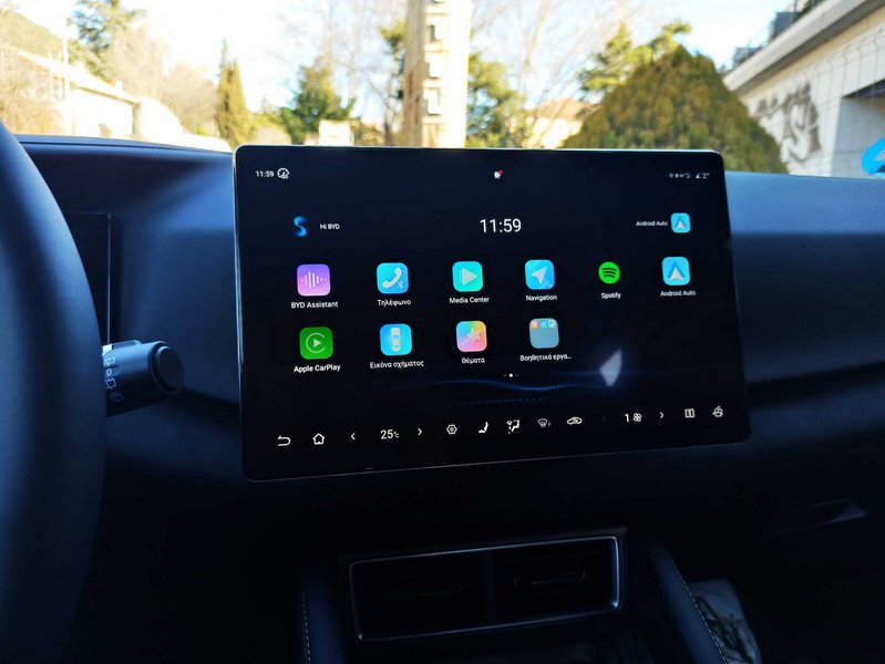 Η ανώτερη έκδοση Boost ανεβάζει τον πήχη ακόμα ψηλότερα, με θερμαινόμενα εμπρός καθίσματα και τιμόνι, ατμοσφαιρικό φωτισμό καμπίνας και ηλεκτρικά αναδιπλούμενους καθρέπτες, ηχοσύστημα 8 ηχείων εμπρός αισθητήρες παρκαρίσματος, 360° κάμερα και αναβαθμισμένο infotainment με – εννοείται, περιστρεφόμενη– 12,8’’ οθόνη. Και επειδή η BYD ξέρει ότι οι tech-lovers δεν αποχωρίζονται το κινητό τους, η εν λόγω έκδοση φέρνει και ασύρματη φόρτιση 15W.
