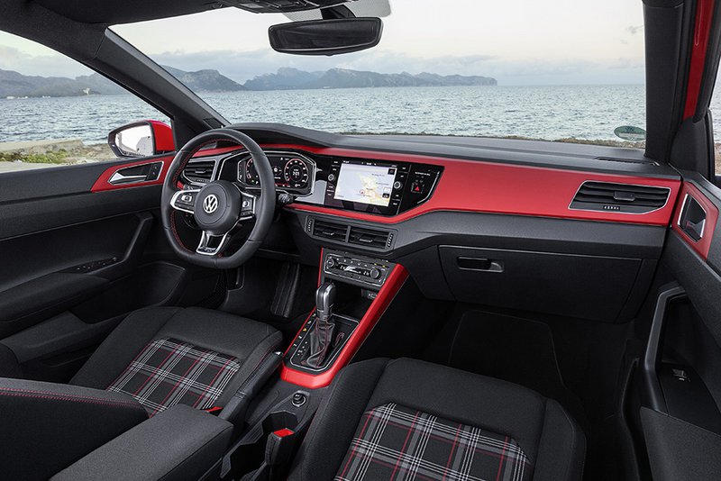 Στο εσωτερικό υπάρχει μια σαφής προσπάθεια να αποδοθεί μια πιο σπορτίφ θεματολογία, με επιλεγμένες επεμβάσεις από χρώμιο και δέρμα σε αρκετά σημεία του σαλονιού, πολύ όμορφα μπάκετ καθίσματα με καρό υφασμάτινη επένδυση, καθώς ένα ιδιαίτερα πλούσιο πακέτο εξοπλισμού άνεσης και ασφάλειας το οποίο περιλαμβάνει όλα τα σύγχρονα συστήματα της εταιρίας για την υποβοήθηση του οδηγού. Για πρώτη φορά στο Polo προσφέρεται ως έξτρα επιλογή ο ηλεκτρονικός πίνακας οργάνων Active Info Display τελευταίας γενιάς των 12,5 ιντσών, με αποκλειστικά γραφικά για την έκδοση GTI. To σύστημα infotainment βασίζεται στην κεντρική οθόνη των 6,5 ή 8 ιντσών ανάλογα την έκδοση με όλα τα συστήματα για την πληροφόρηση του οδηγού και την διασύνδεση των φορητών συσκευών.